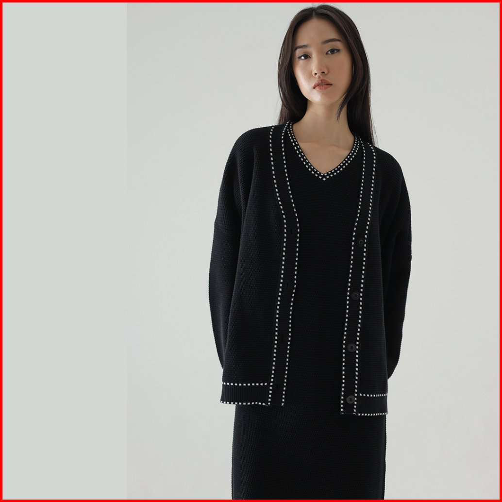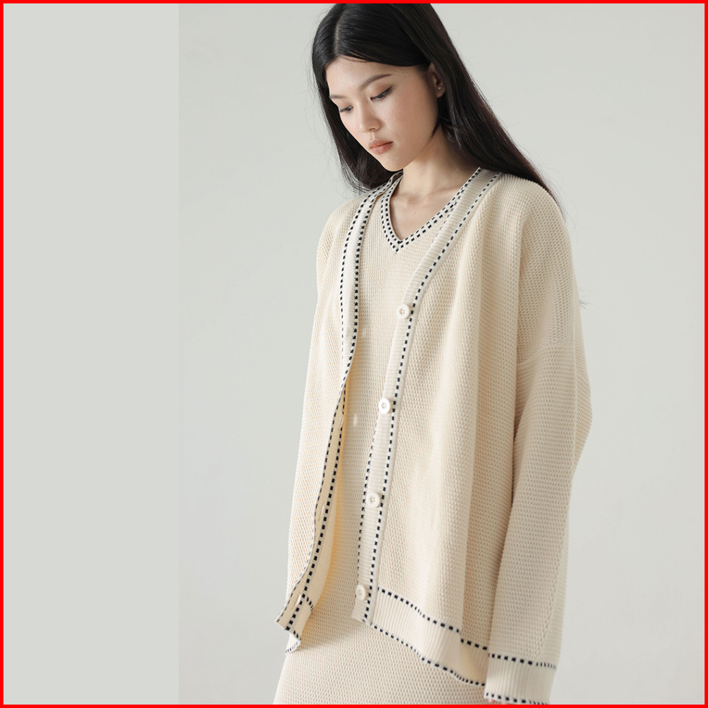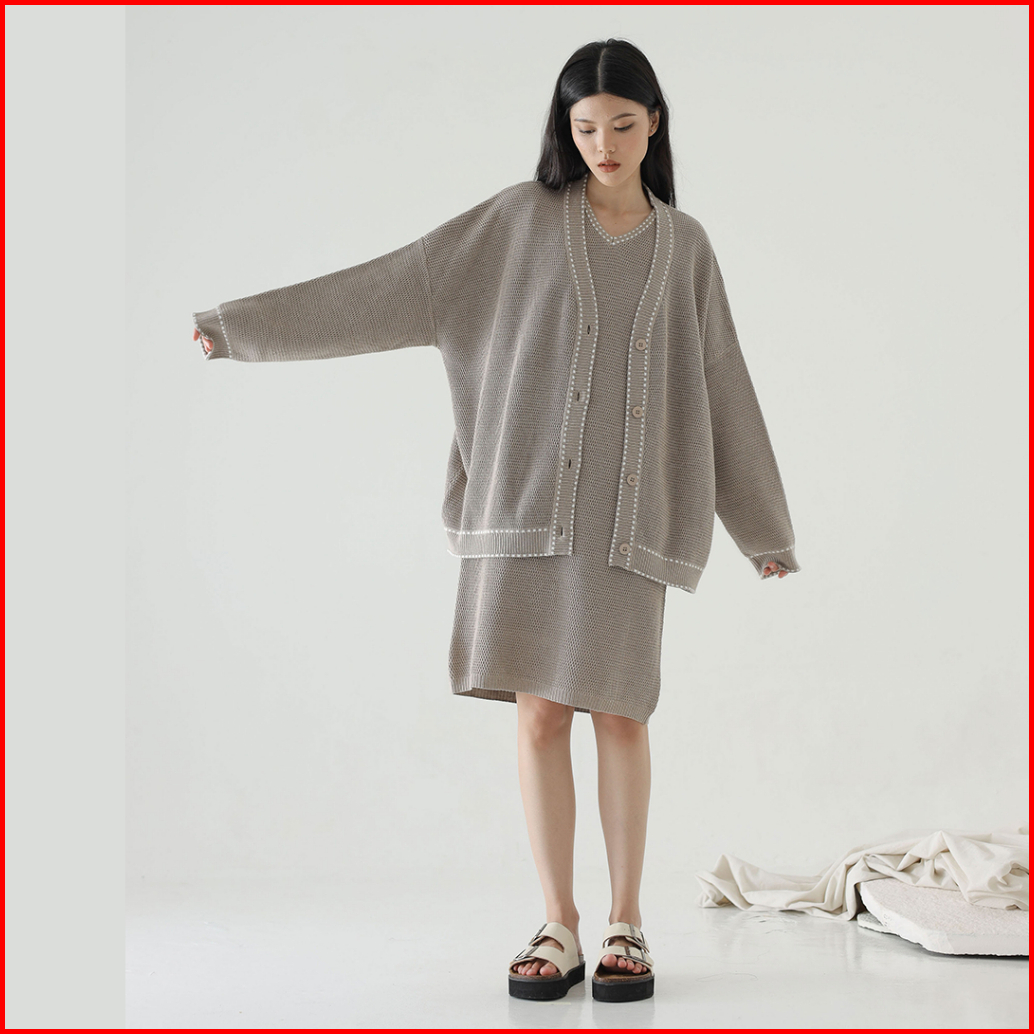 Inkano Thames Outer - Outerwear Wanita Knit Cardigan Wanita Dengan Details Dash Dan Kancing