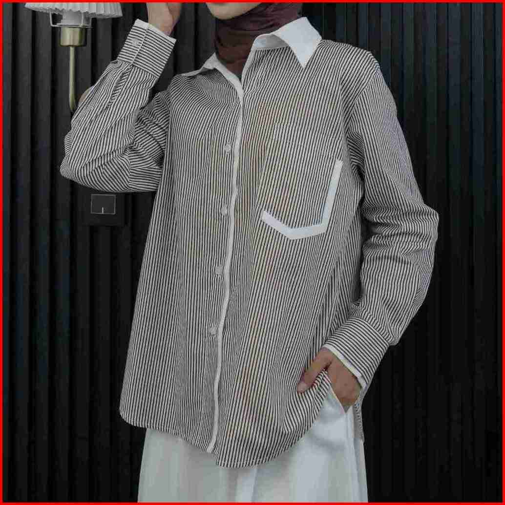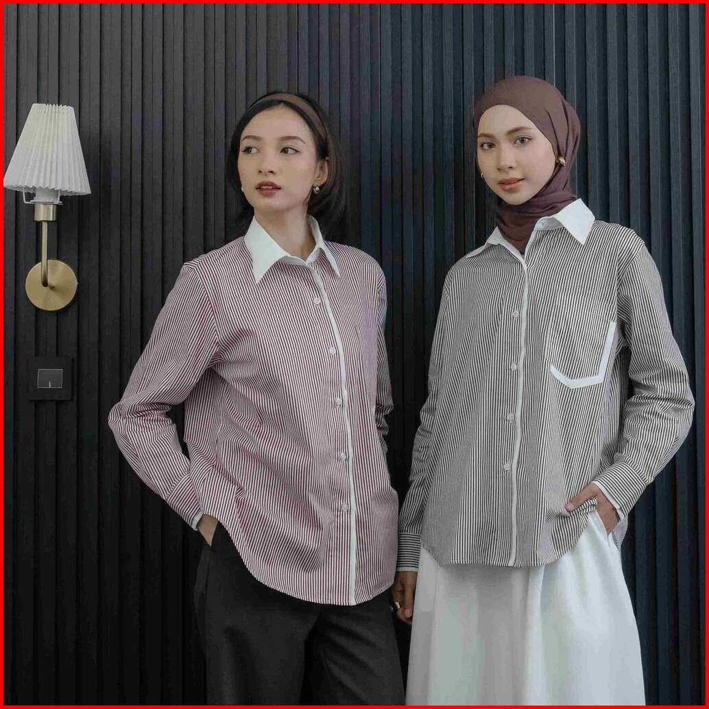 Hosofshopaholic - Shia Shirt - Atasan Wanita - Kemeja Salur - Stripe Shirt