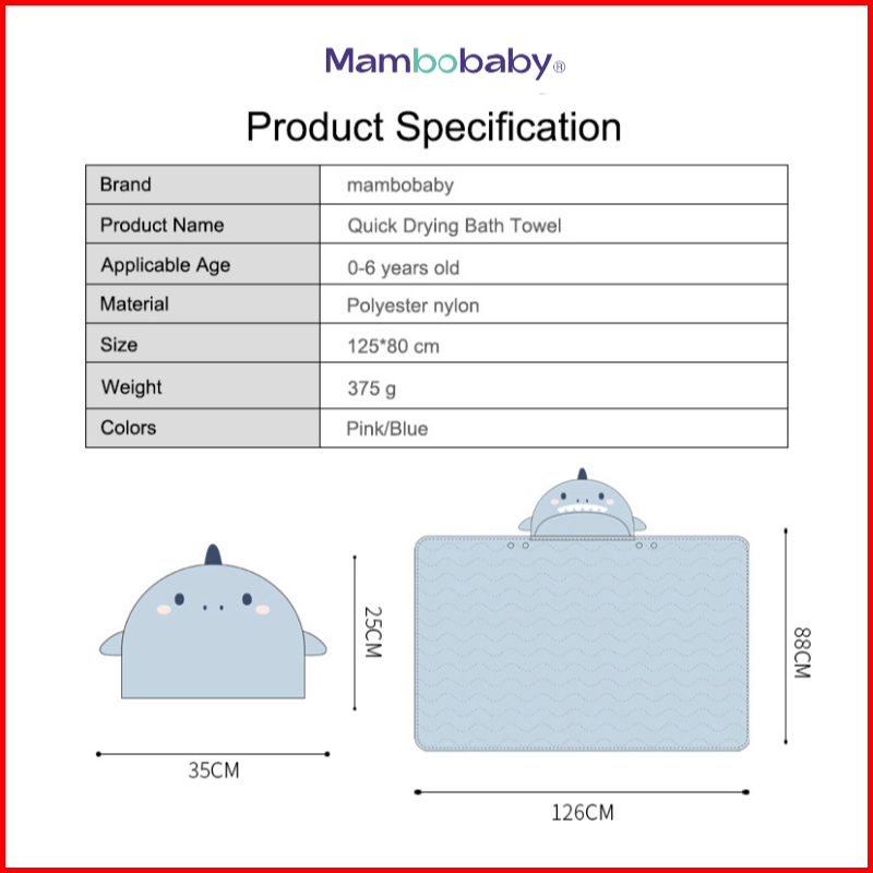 Mambobaby Quick-drying Bath Towel Swim Handuk Berenang Anak Bayi