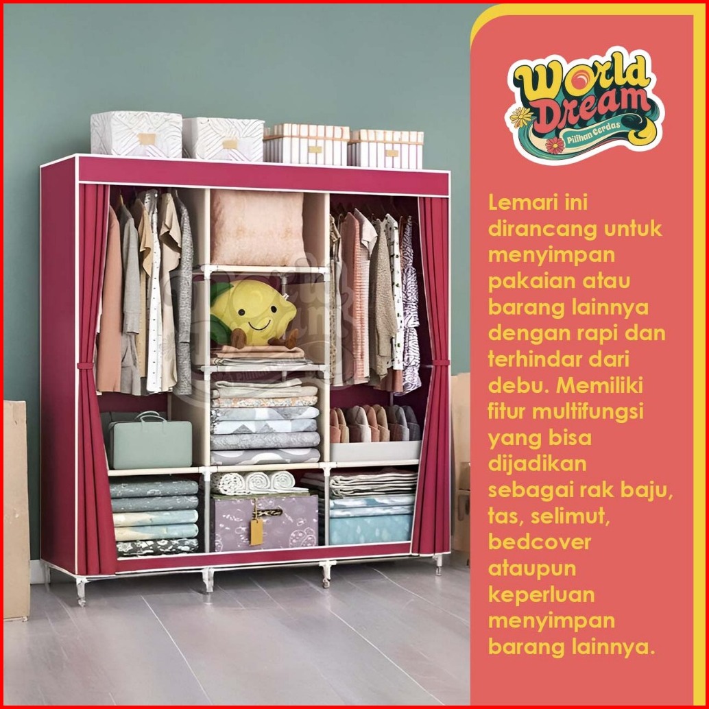Worldream Lemari Pakaian Kain Portable Import 3 Sisi Praktis Premium Matte - 88130 Rak Serbaguna