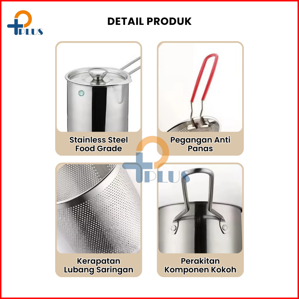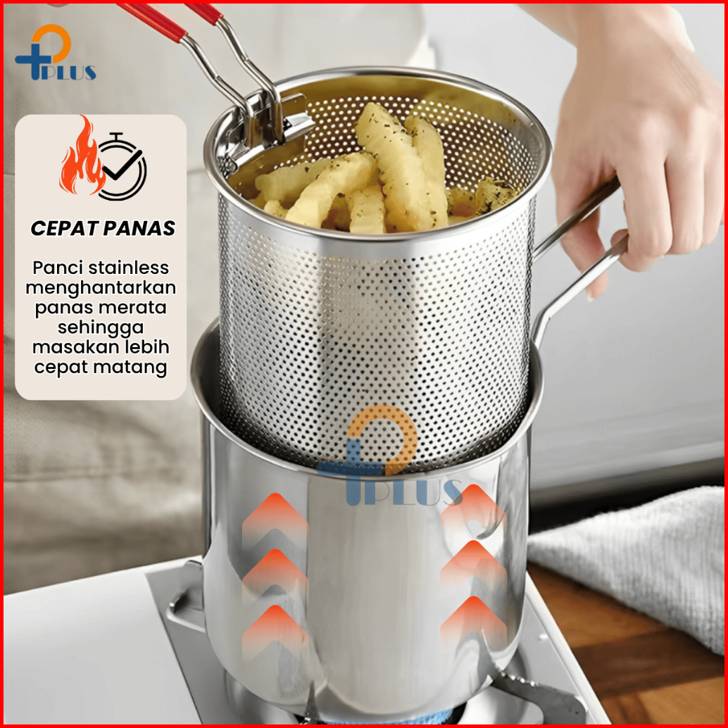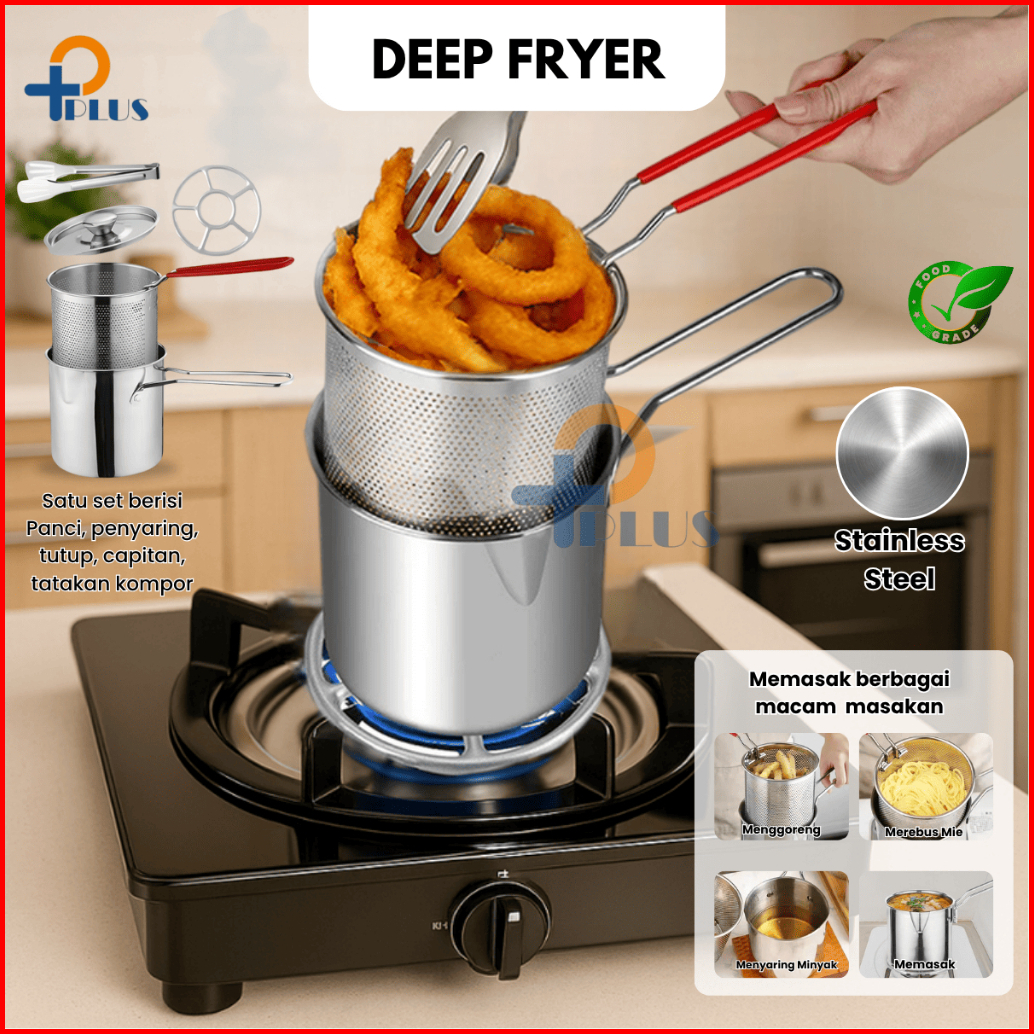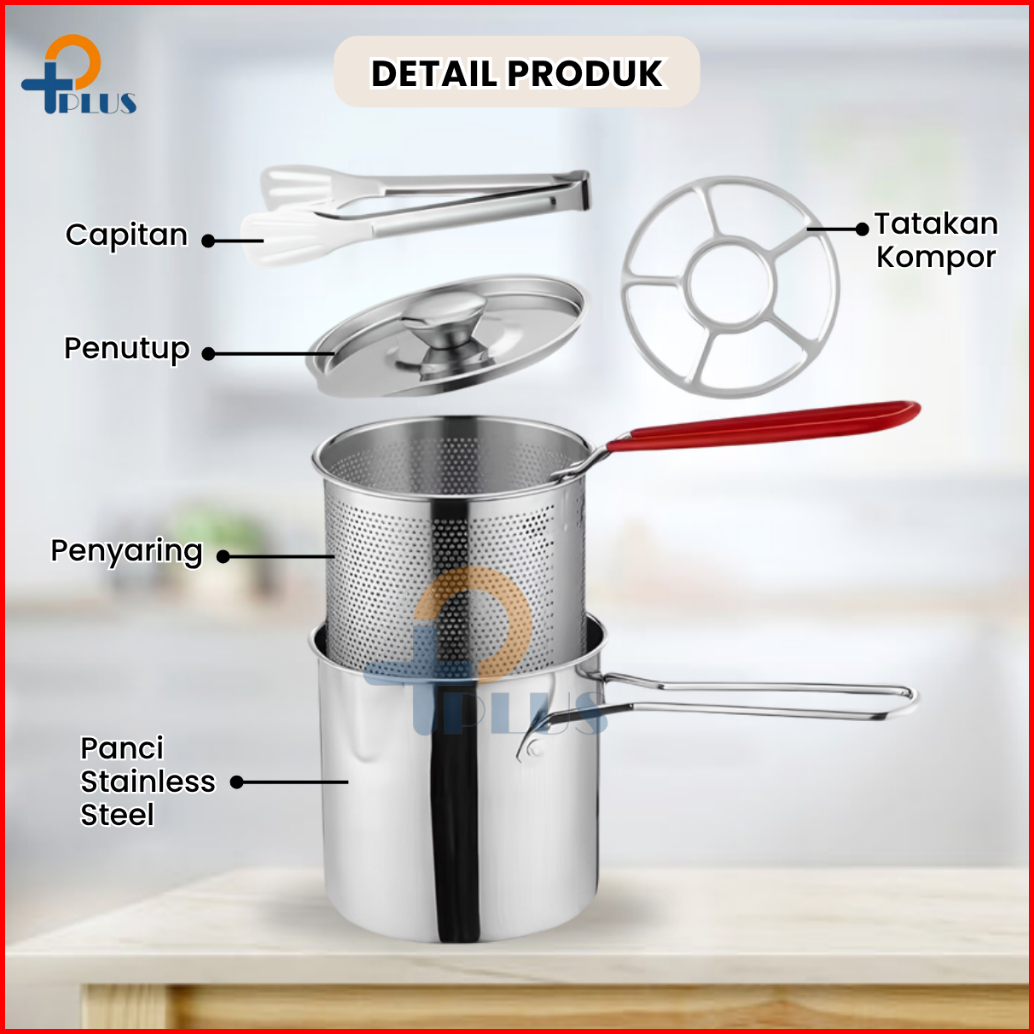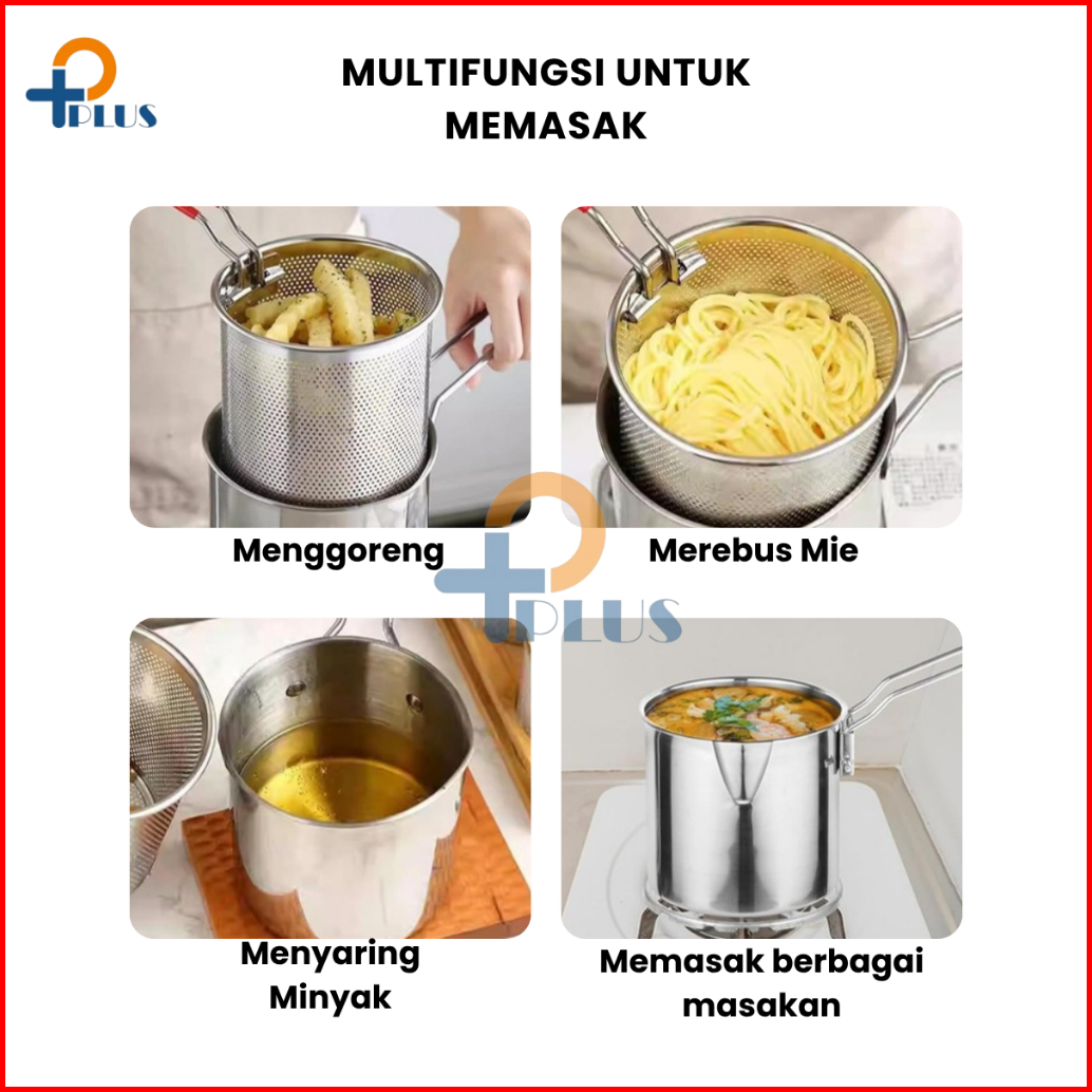 Pplus Panci Multifungsi 5 In 1 Multi Deep Fryer Set Panci Penggorengan Rebus Stainless Steel Saringan Capitan Klip Makan