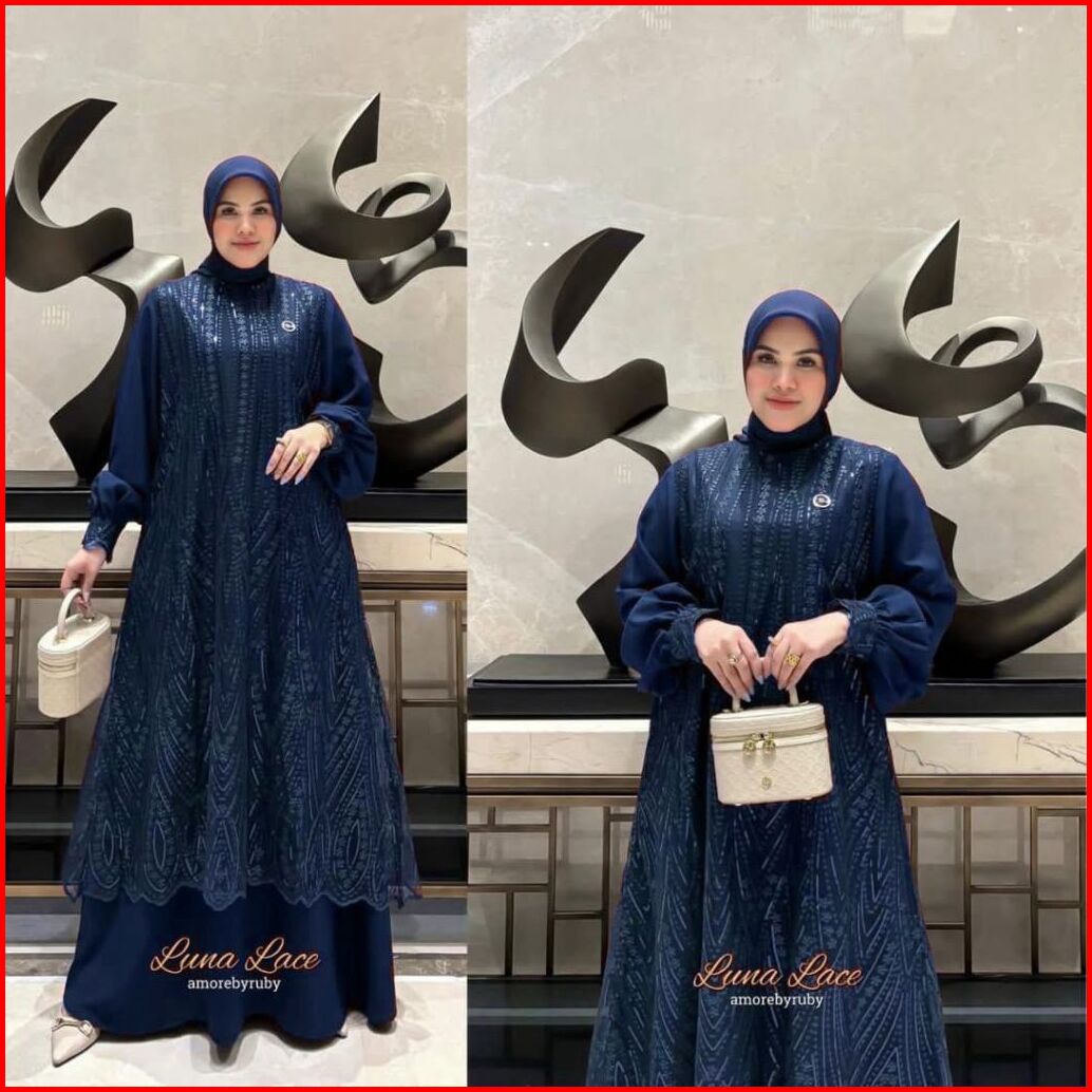 Harus Style1204 Lunna Lace Maxi Dress Pesta Warna Burgundy Bahan Ceruty Babydoll Mix Burkat Mewah