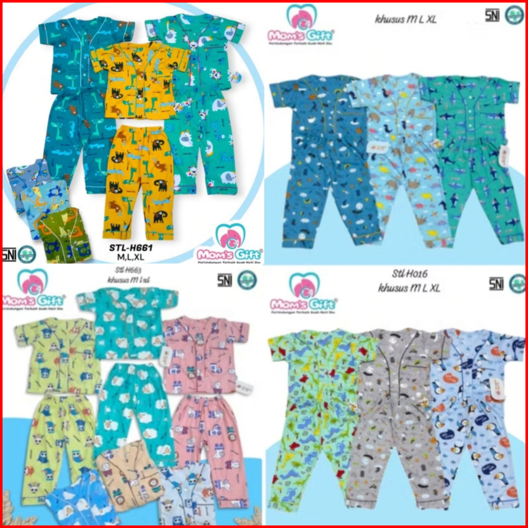 3pcs Baju Bayi Moms Gift Pendek Celana Panjang Size M L Xl Piyama Baju Tidur Anak Katun Lengan