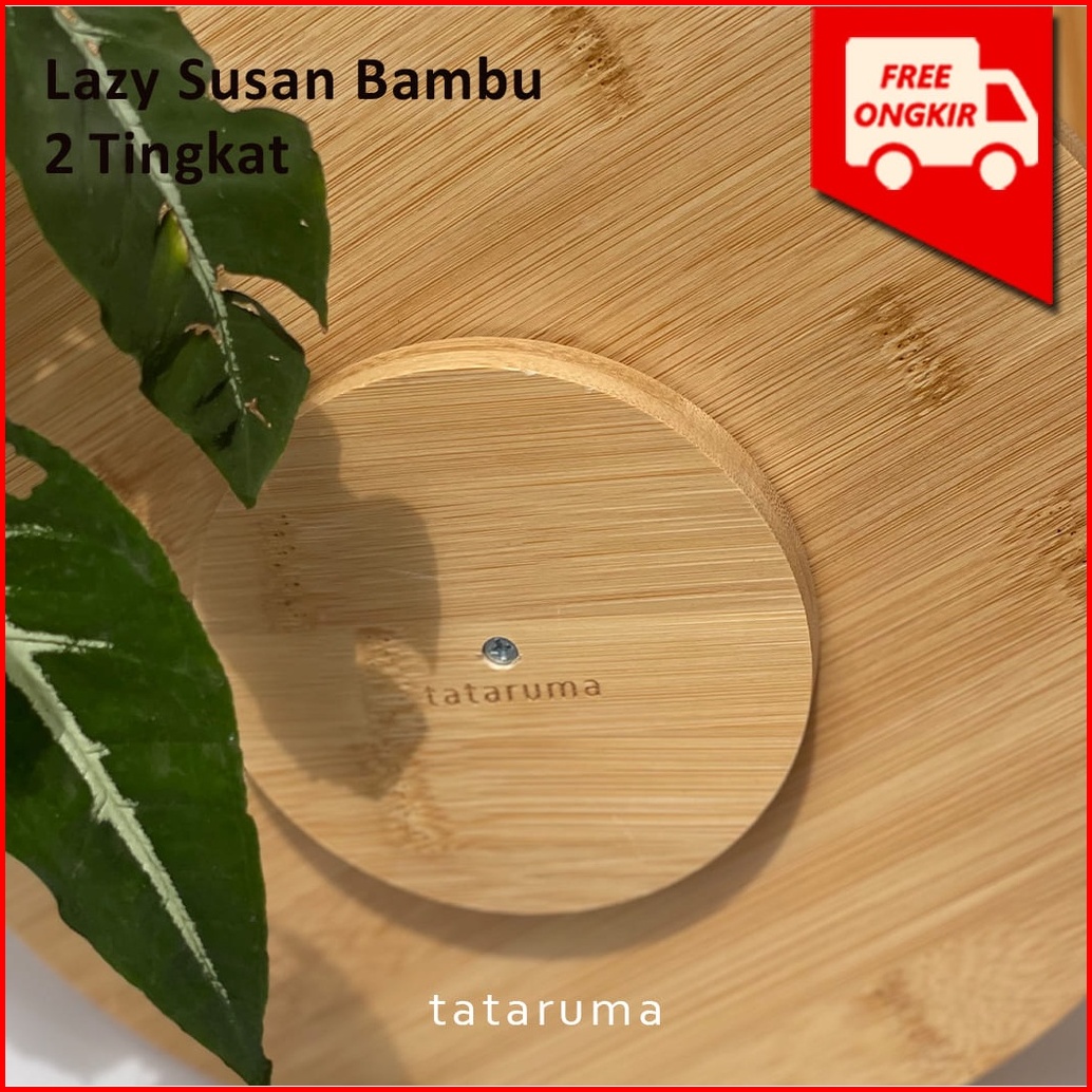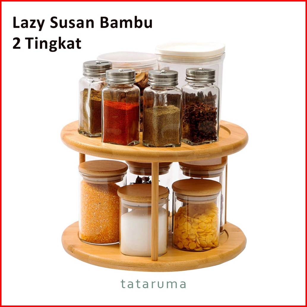 Tataruma Suzi Bamboo - Spinning Lazy Susan Organizer Bambu 2 Tingkat Turntable Double Layer Nampan Papan Wadah Meja Saji