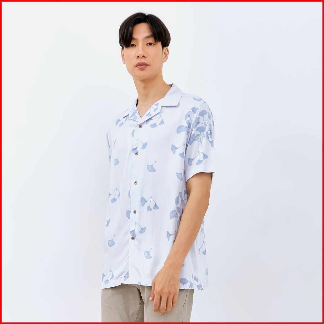 M231 Kemeja Pria Printing Hawaii Pendek Biru New Terrain 3180c