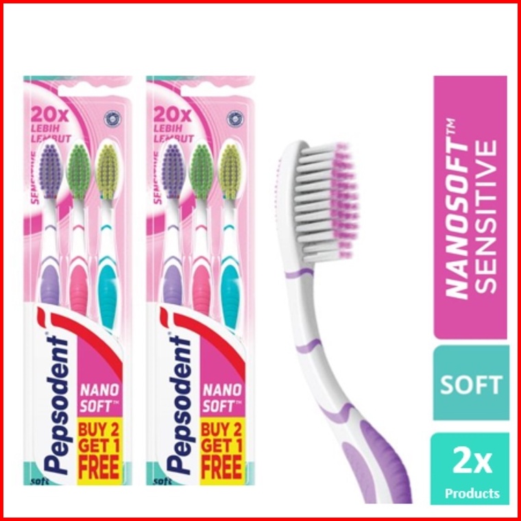 Pepsodent Sikat Gigi Toothbrush Nanosoft Sensitive Isi 3 X 2 Pcs
