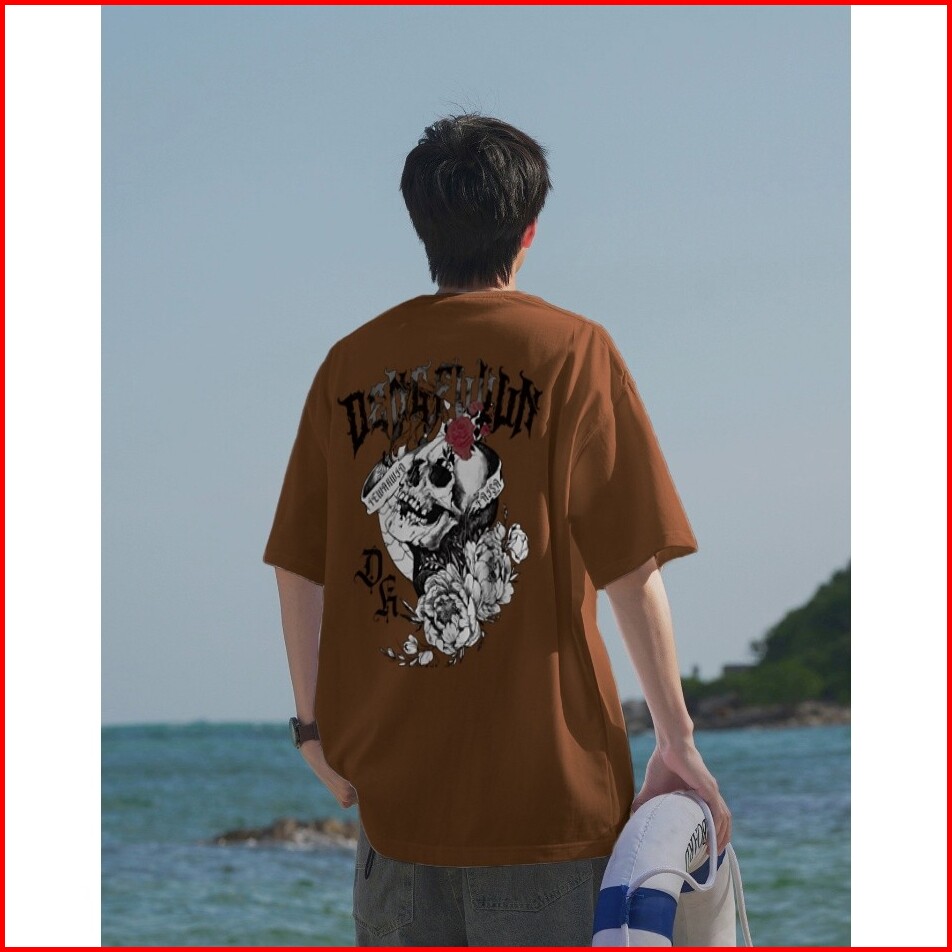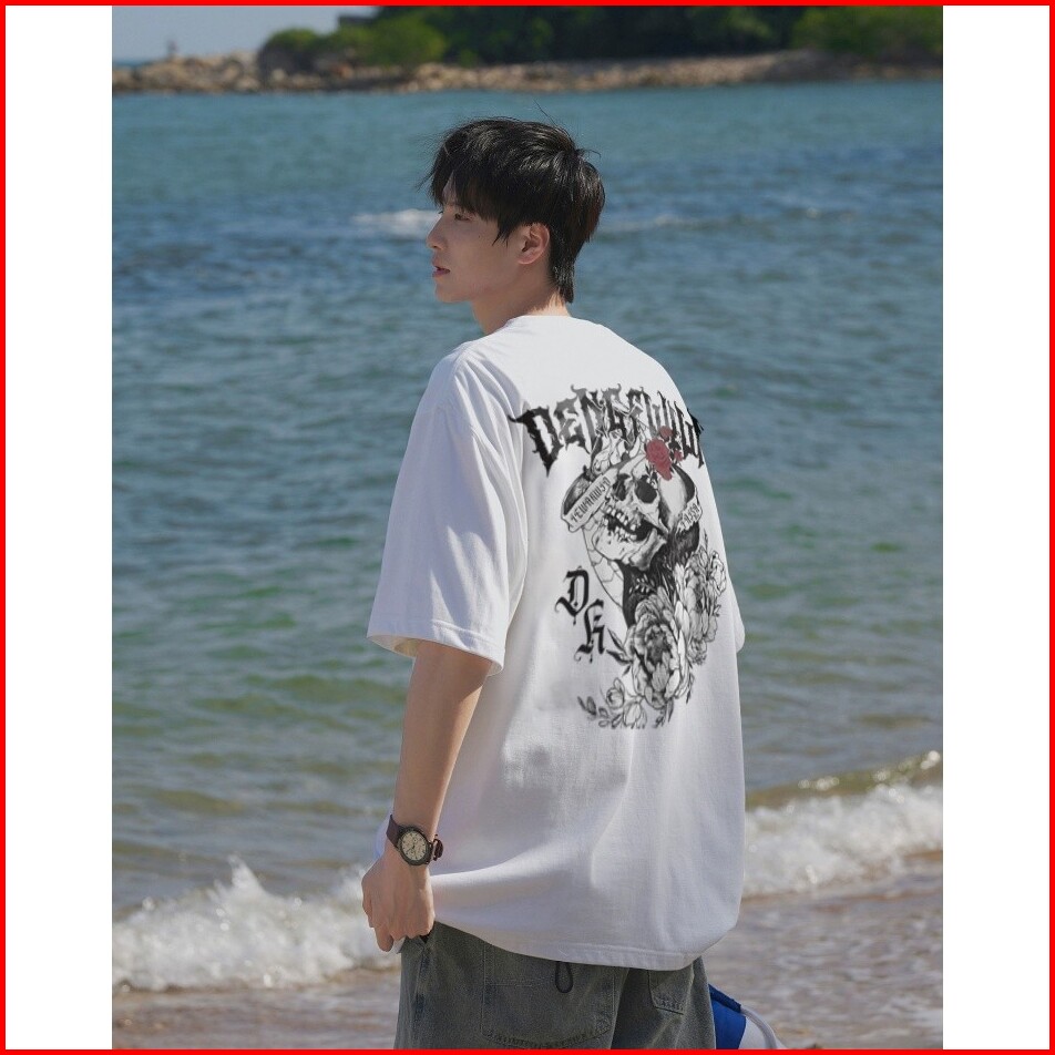 Naomifashion-kaos Pria Distro Original 100 Retro Tengkorak Dan Cetakan Huruf Baju Oversize Pria Retro T-shirt Atasan Pre