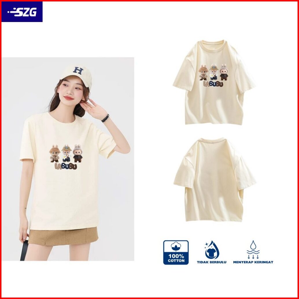 Szg T-shirt Pria Premium 24s 200g Pop Mart Labubu Macaron Flash Sale Kaos Unisex Short Sleeve Promo Baju Jumbo