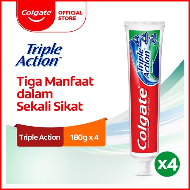 Colgate Triple Action Toothpaste 180g - Pasta Gigi 4pcs