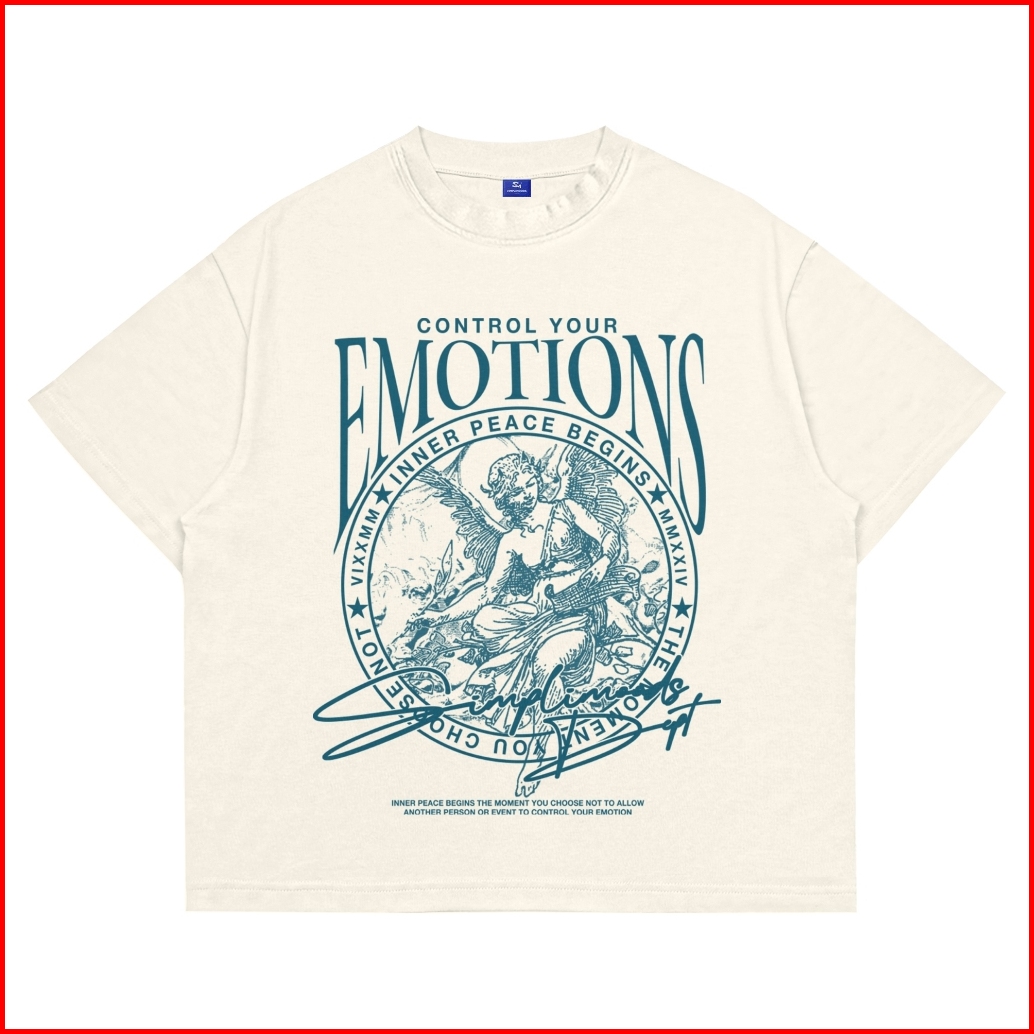 Simplimoods - Kaos Boxy Tee Fit Oversize Tshirt Emotions Cream Ivory Katun Combed 24s Unisex
