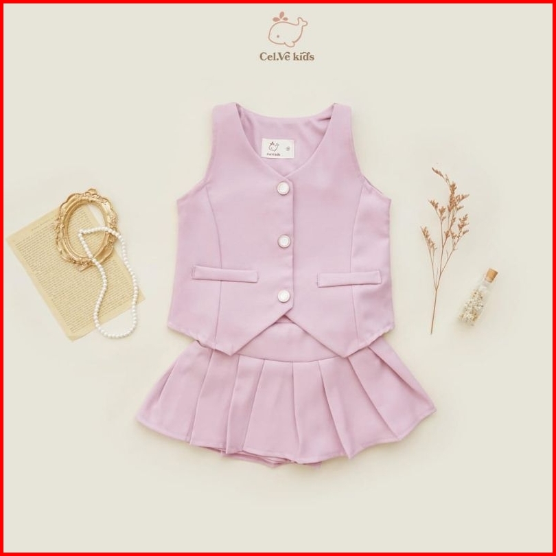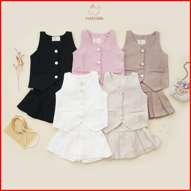 Setelan Jolene Set Baju Vest Rompi Rok Celana Anak Perempuan Korean Style Linen Usia1-6th