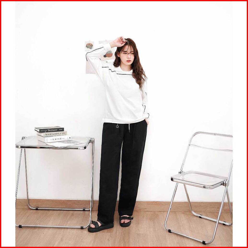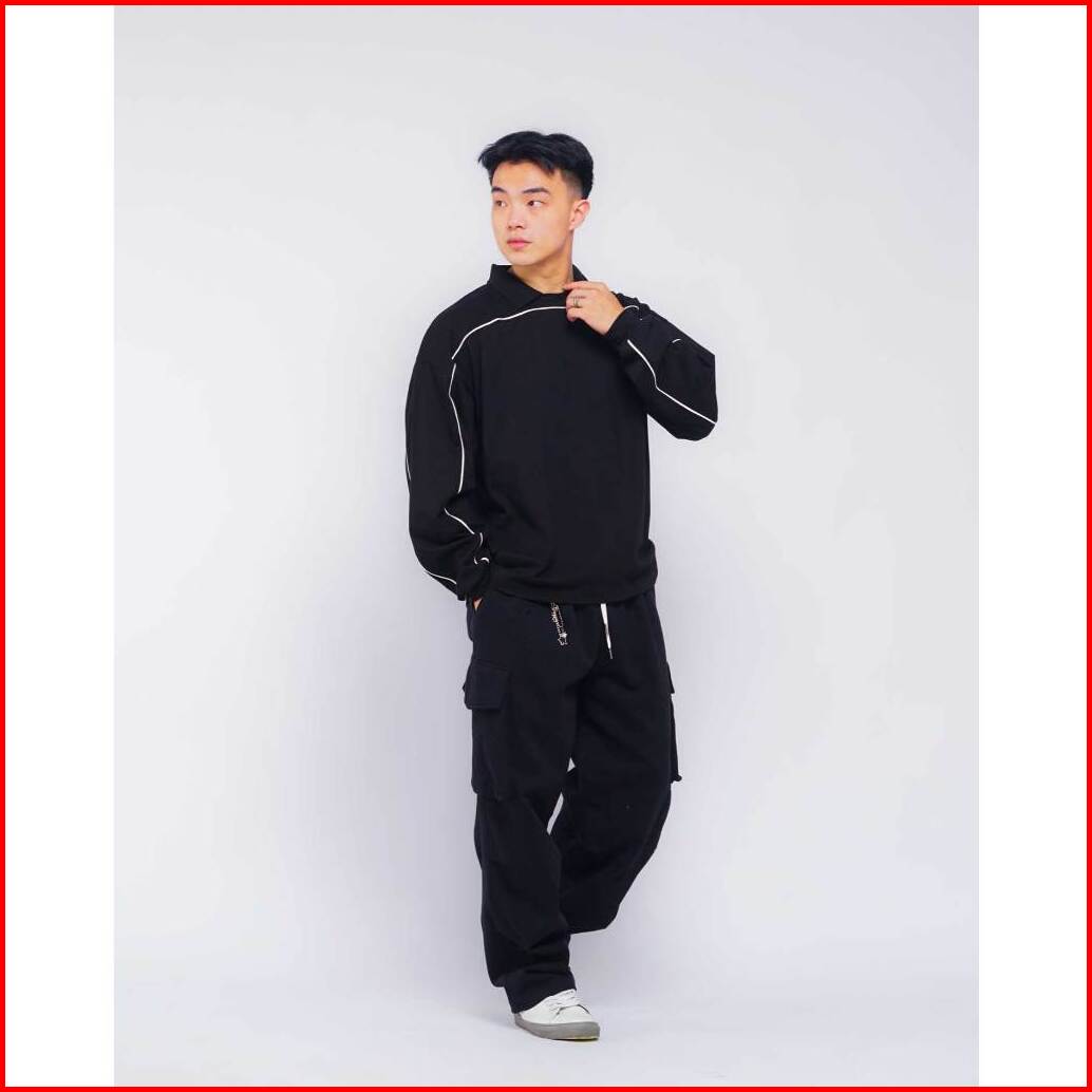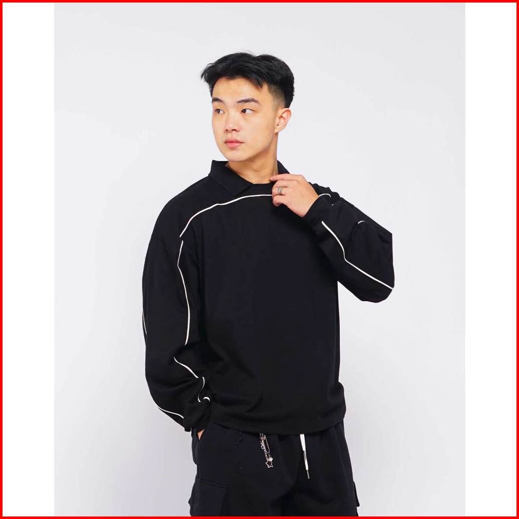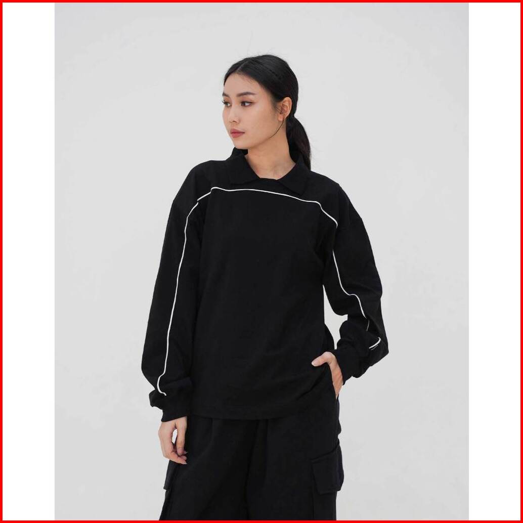Boxy Piped Polo Long Sleeve - Polo Lengan Panjang Boxy Berlis Abyad Apparel Pro Project