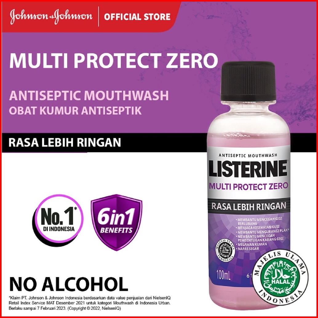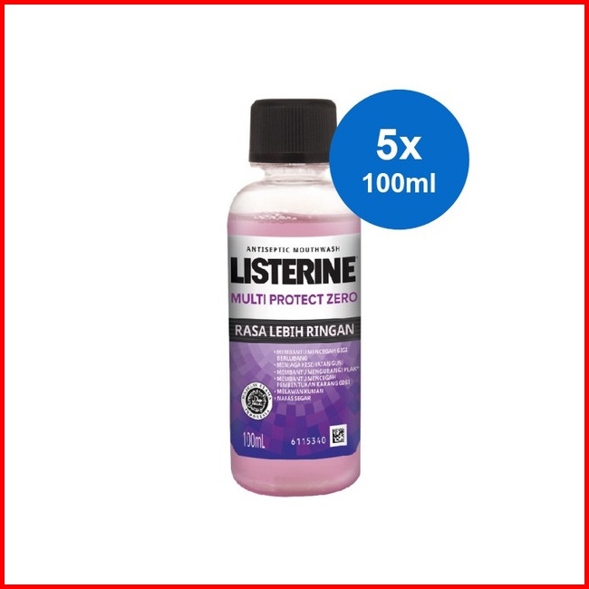Listerine Multi Protect Zero Antiseptic Mouthwash Obat Kumur Antiseptik 100 Ml - No Alcohol 5 Pcs
