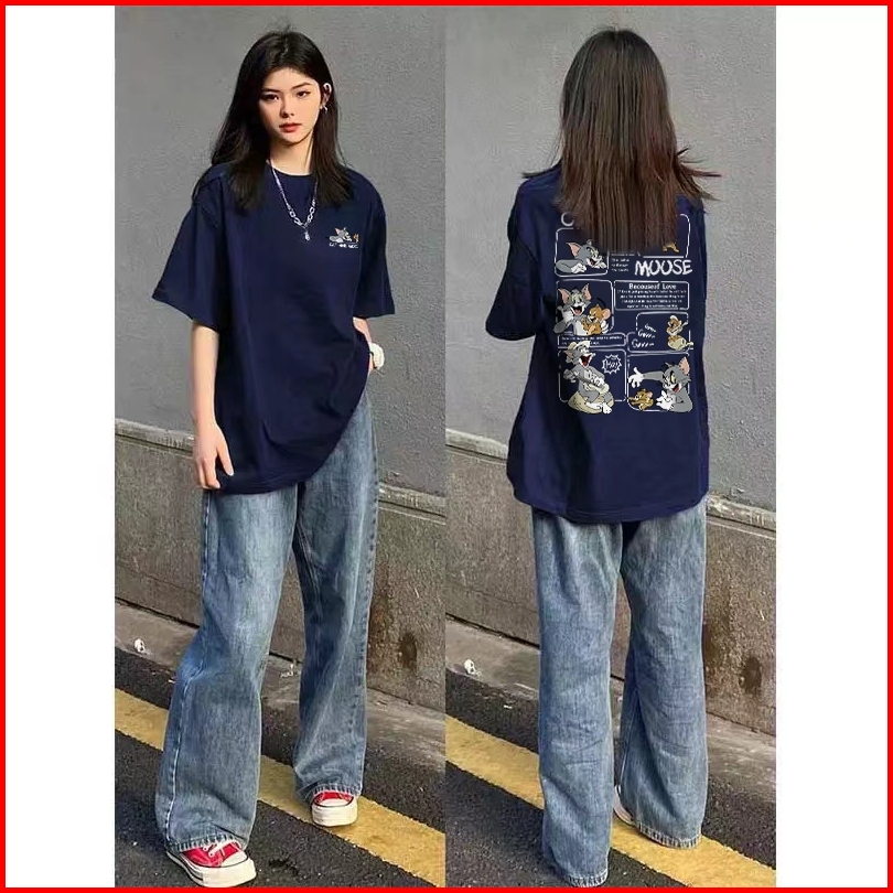 Forteid Biru Laut T-shirt Lengan Pendek Baju Kaos Oversize Wanita Baju Kaus Wanita Korea Baju Atasan Wanita Terbaru Tom