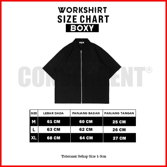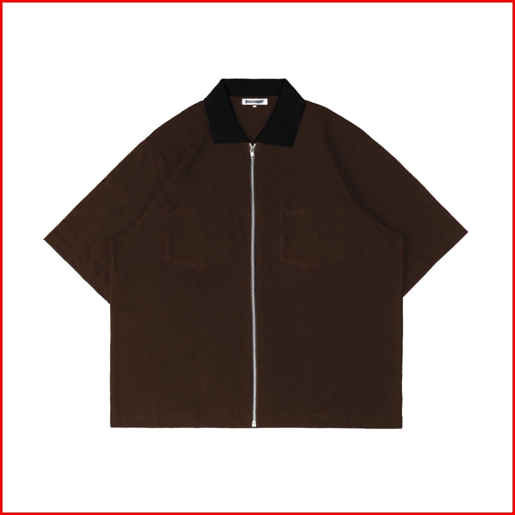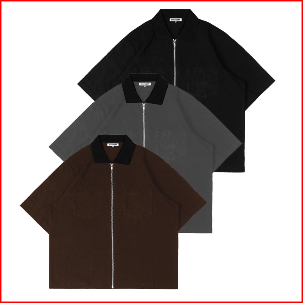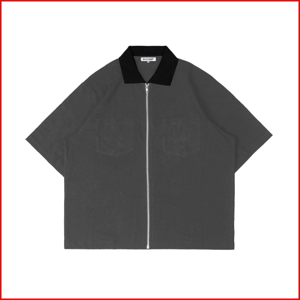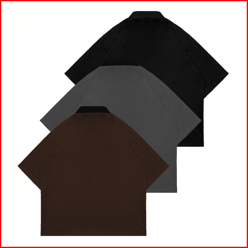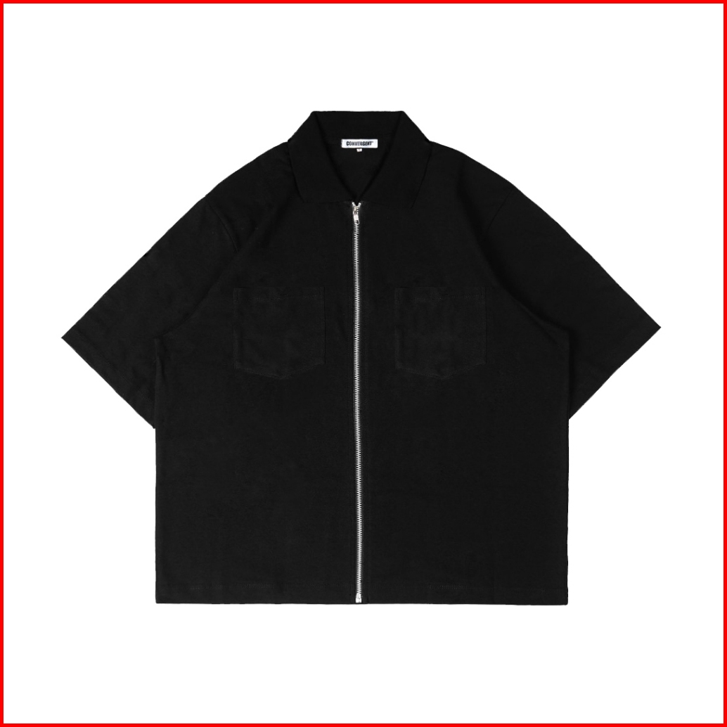 Convergent - Prince Kemeja Boxy Polos Basic Pria Wanita Lengan Pendek Zipper Workshirt Hitam Tebal