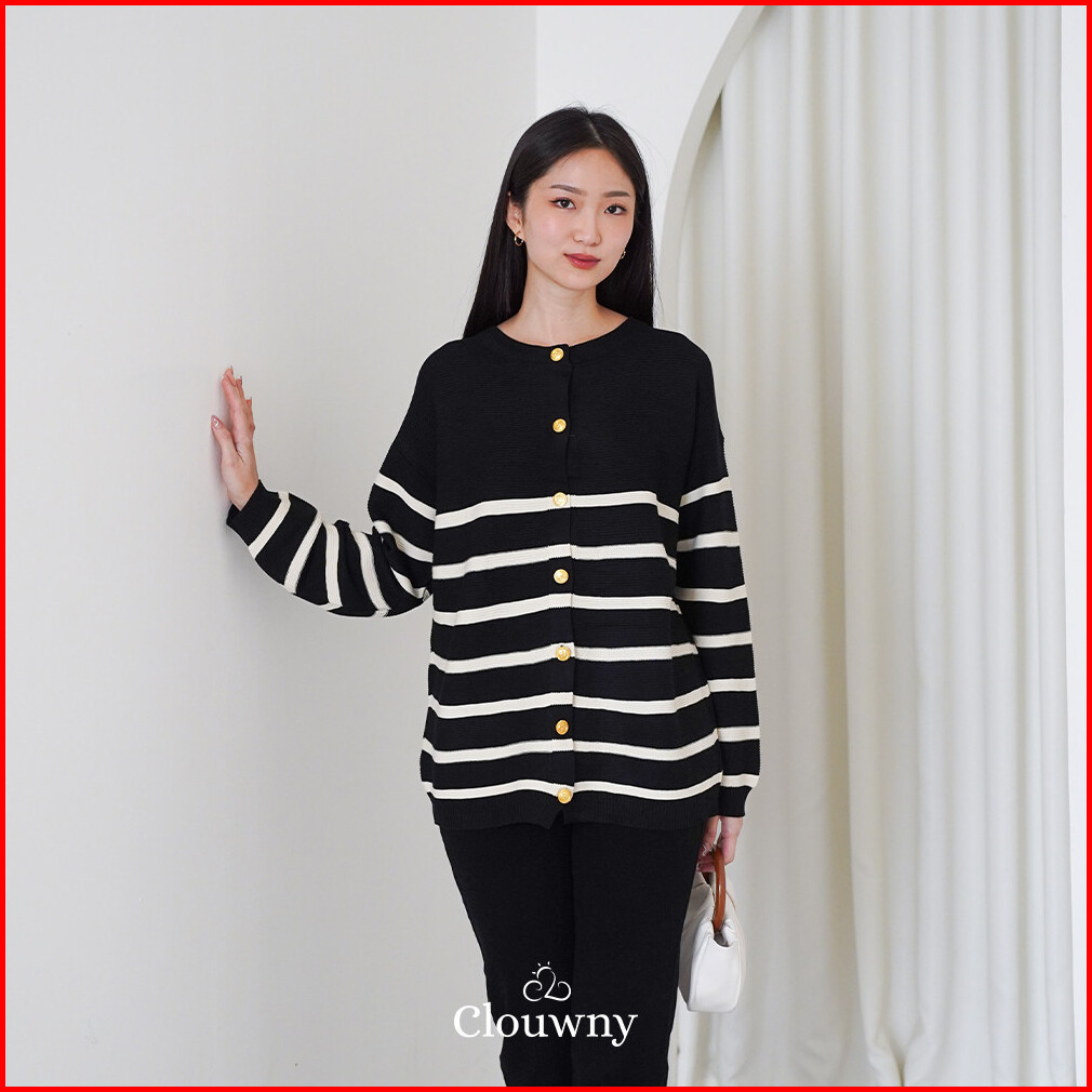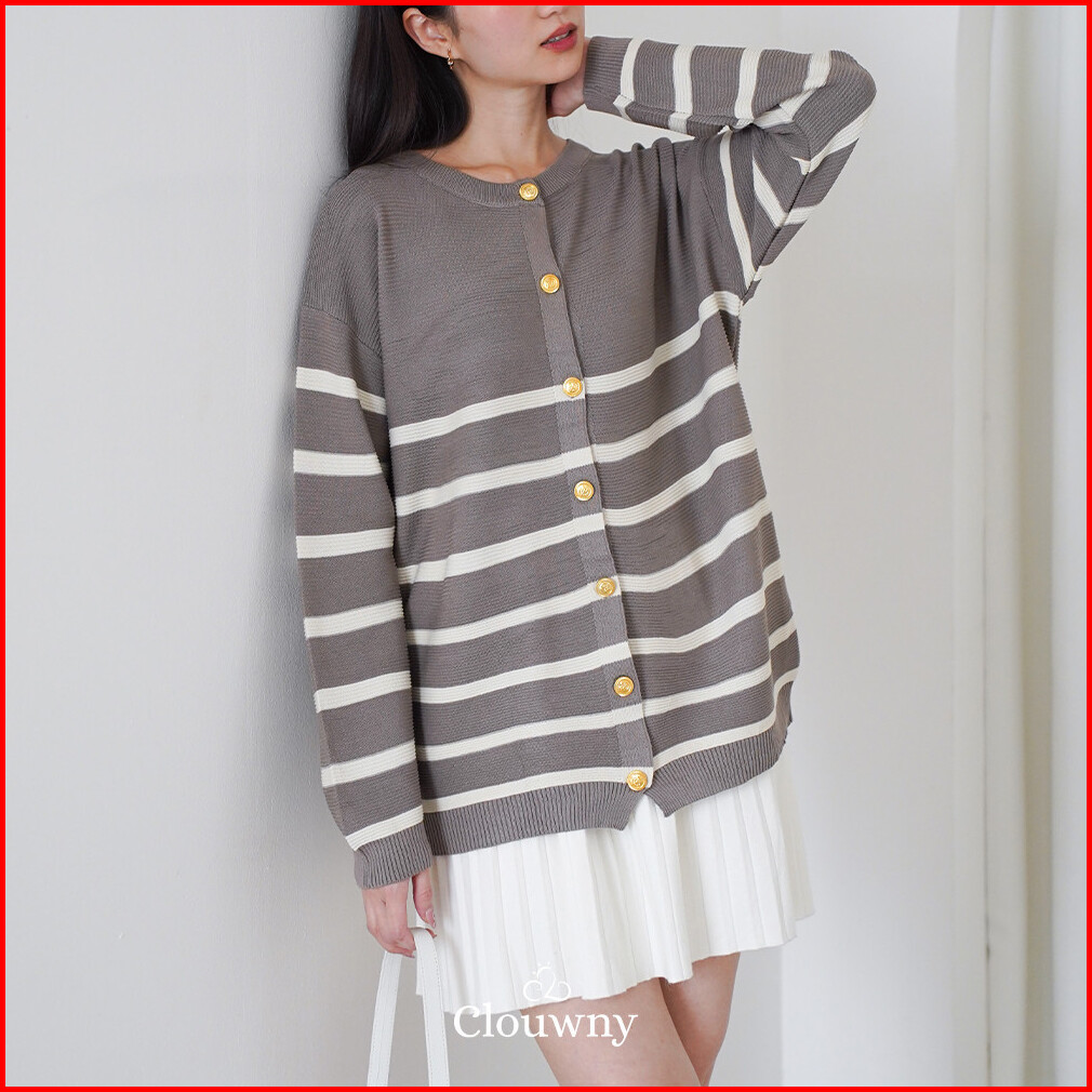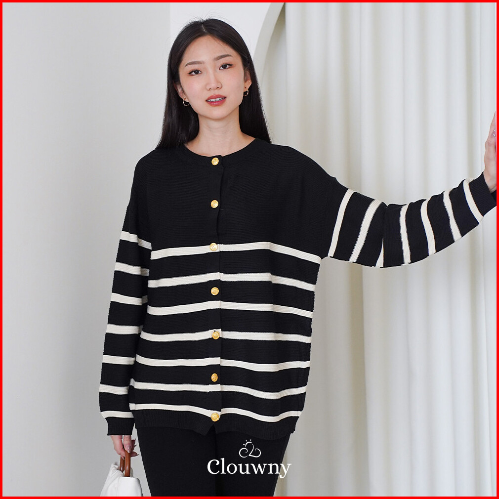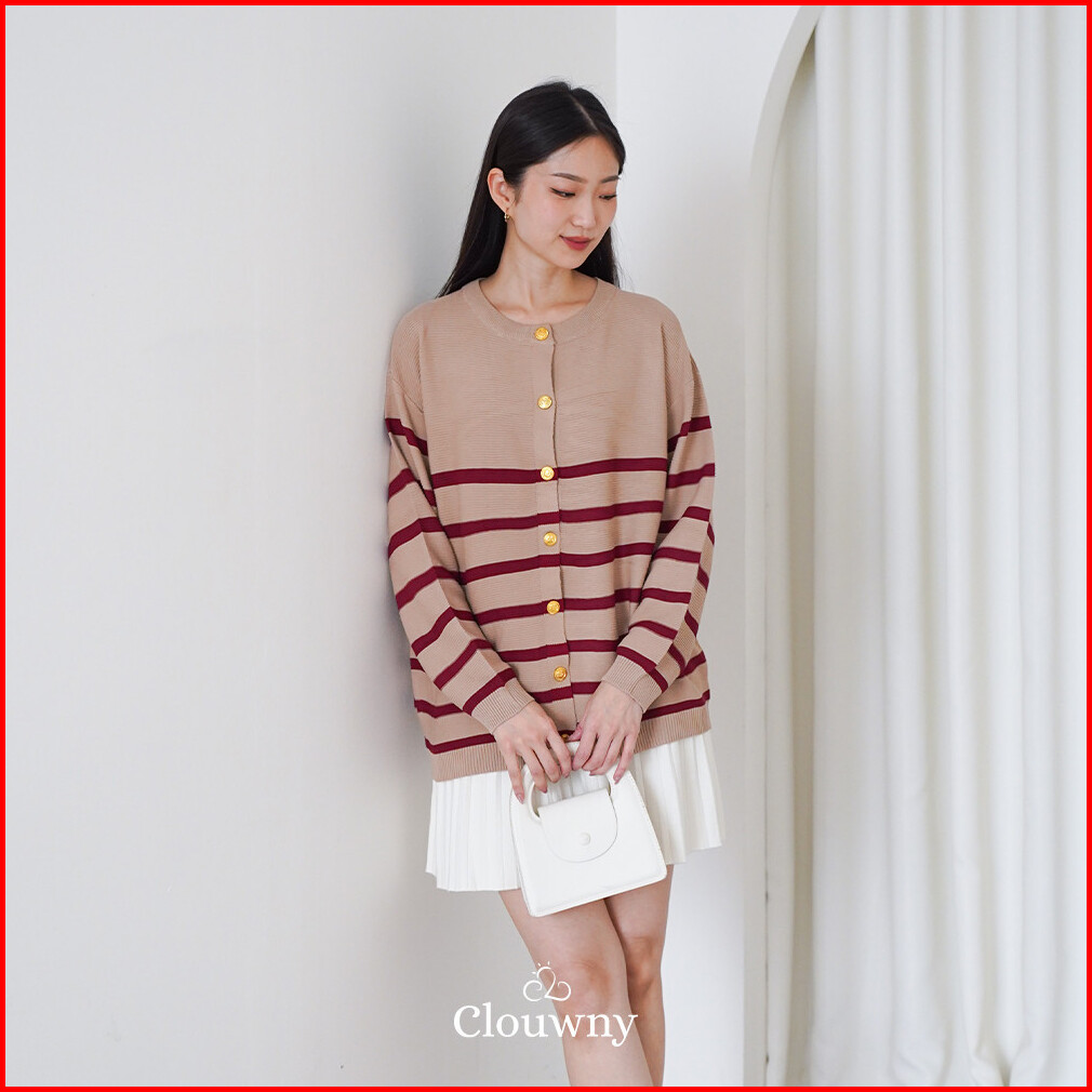 Clouwny Memphis Stripes Knit Cardigan Atasan Wanita Outer Korean Look