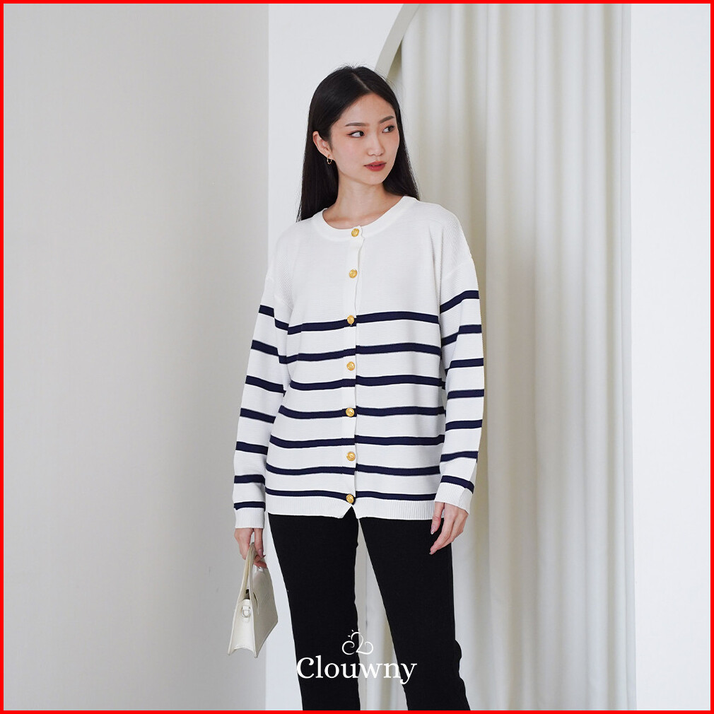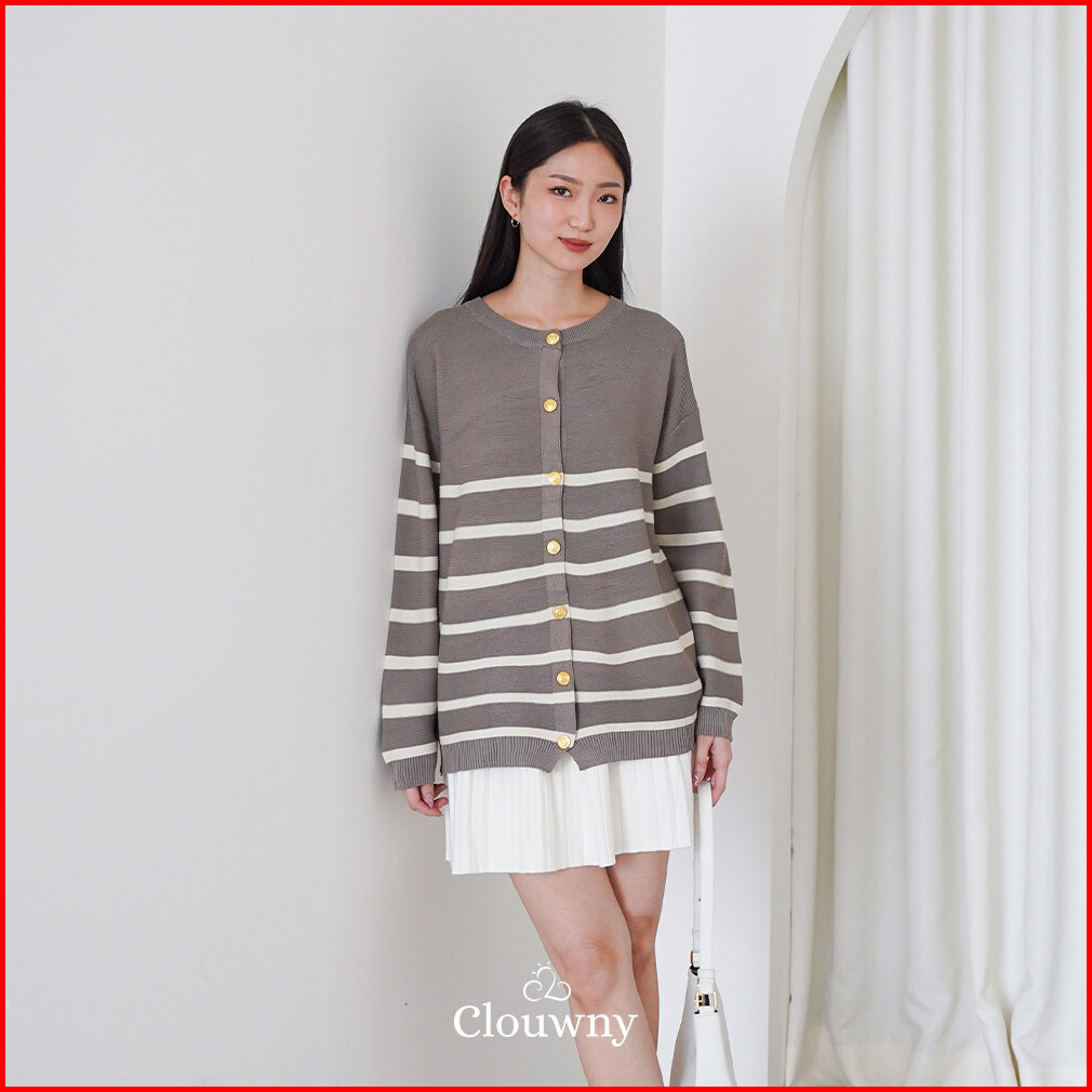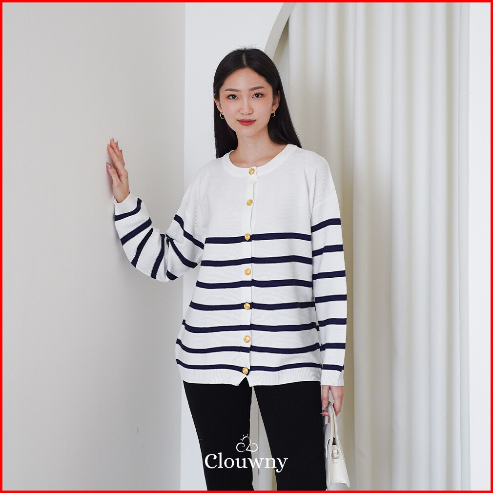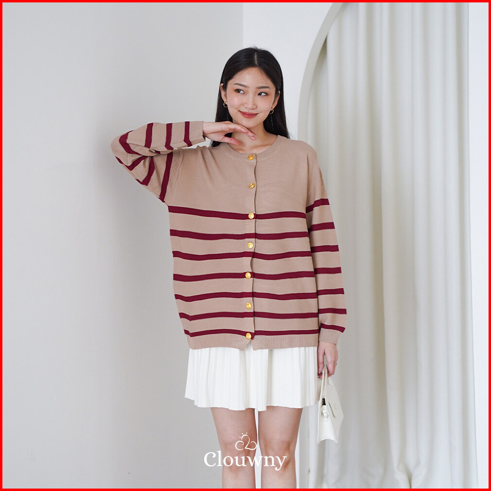 Clouwny Memphis Stripes Knit Cardigan Atasan Wanita Outer Korean Look