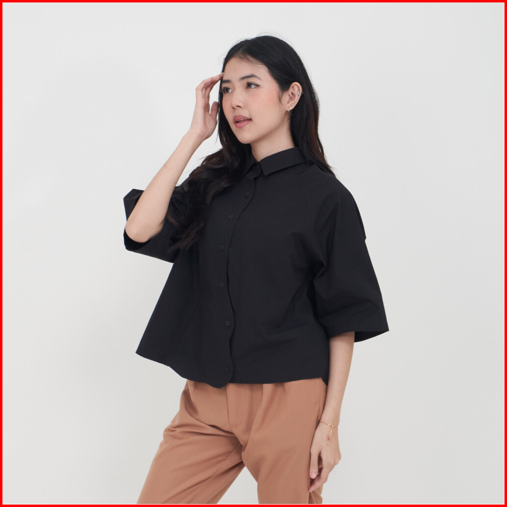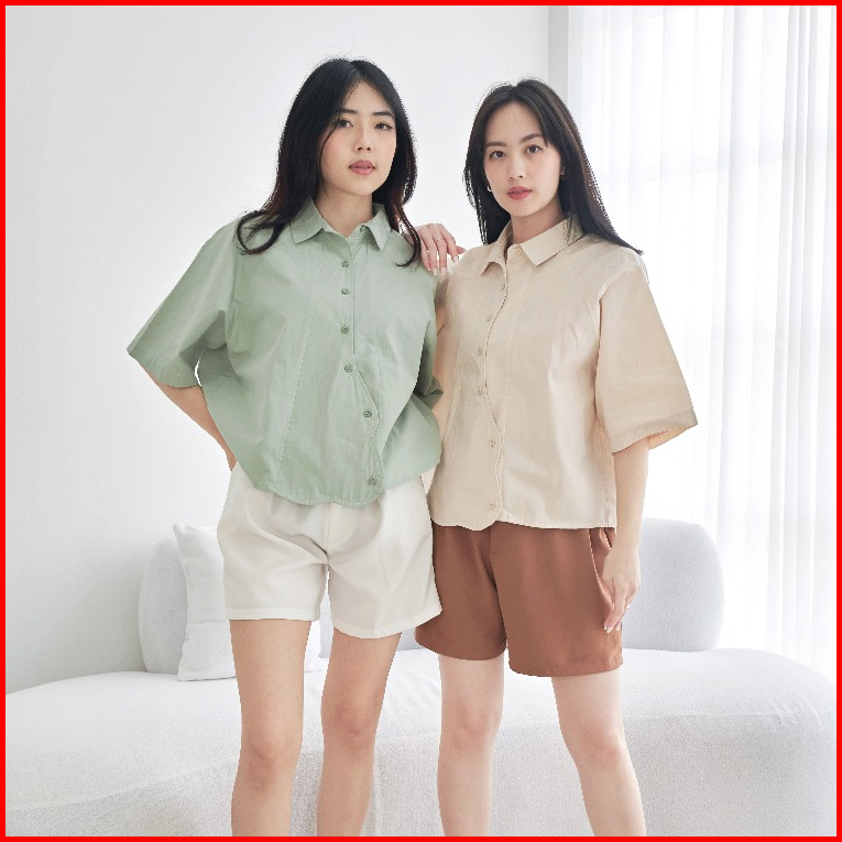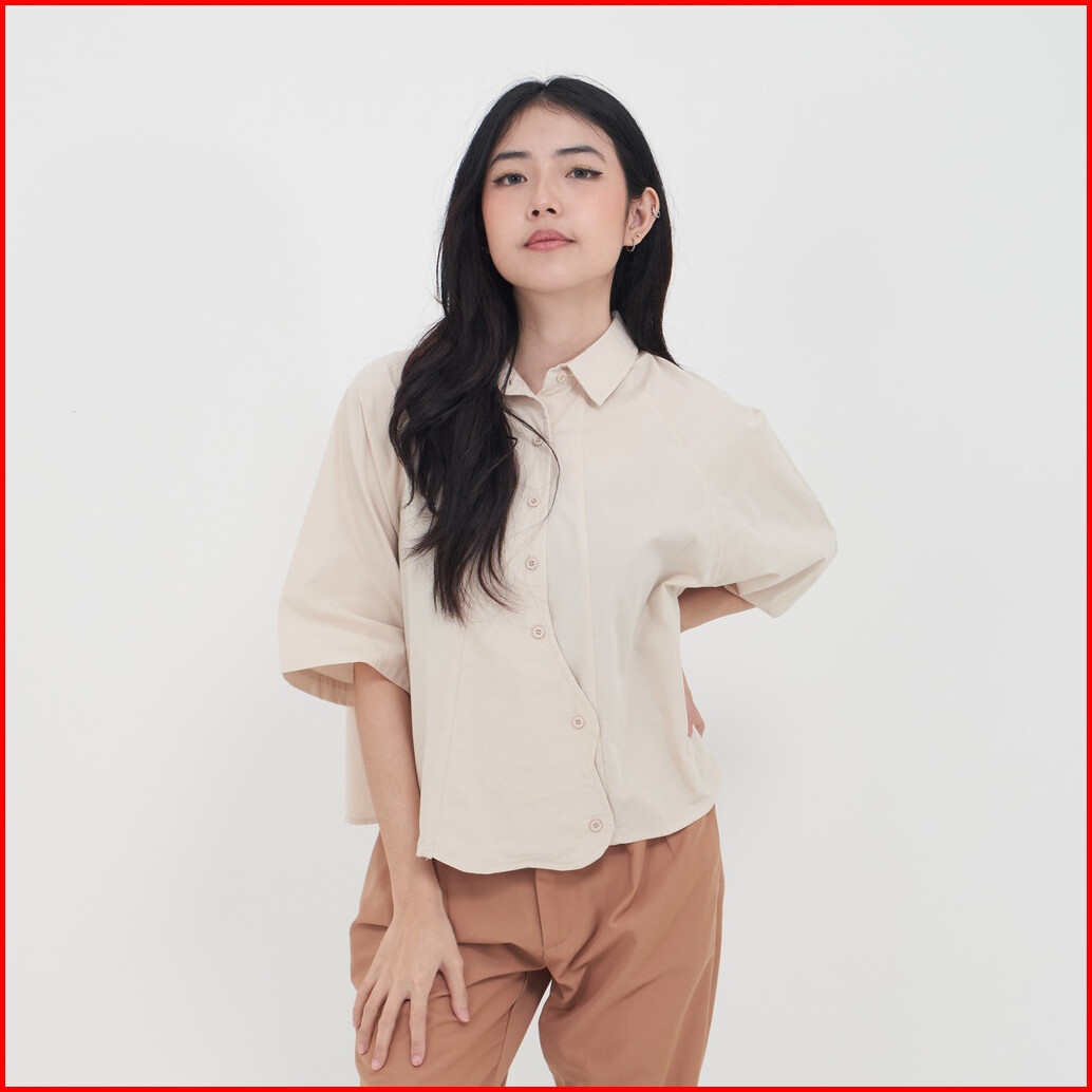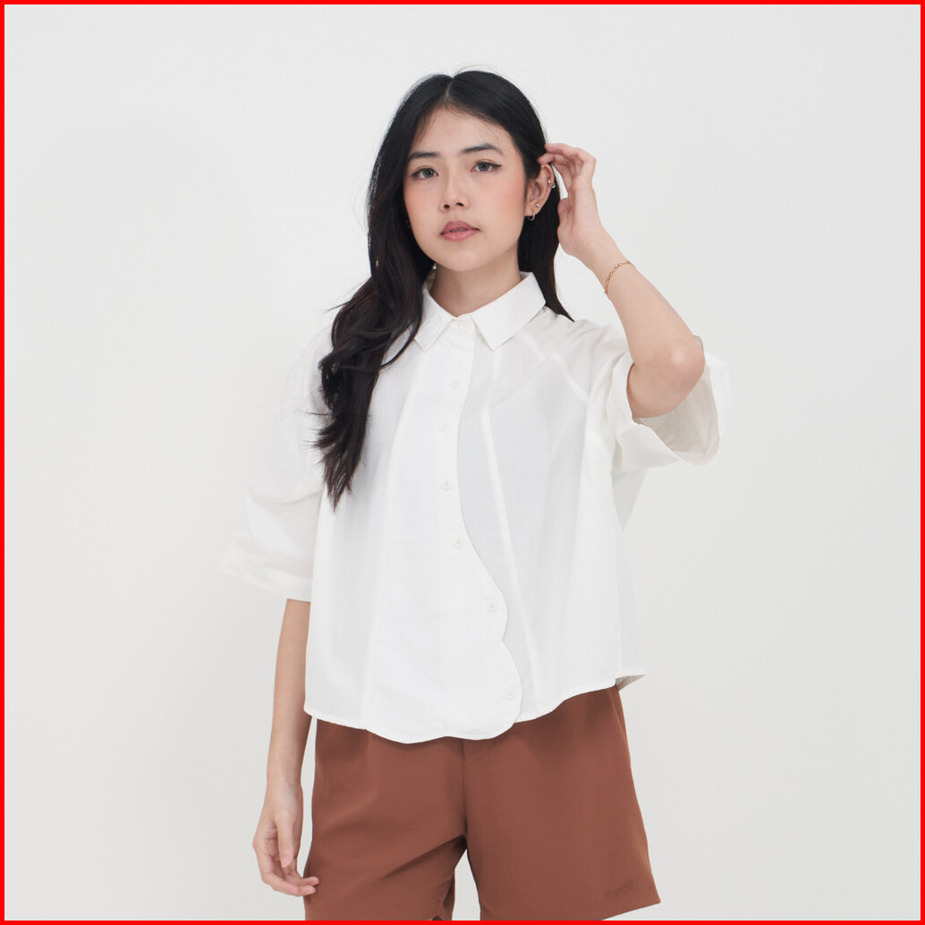 Queentin Kemeja Wanita Casual 0664 Katun Poplin Polos Lengan Pendek