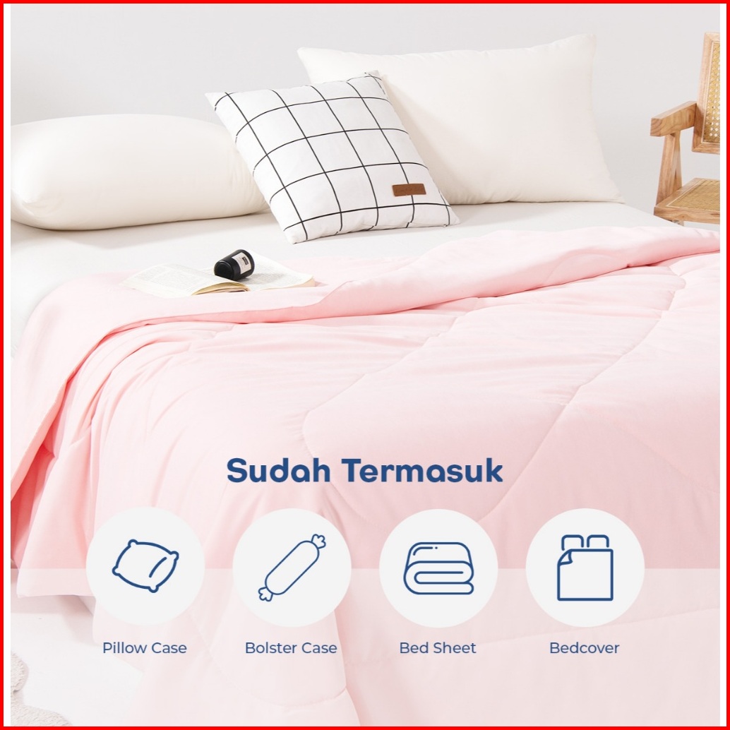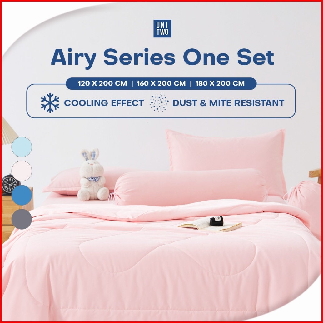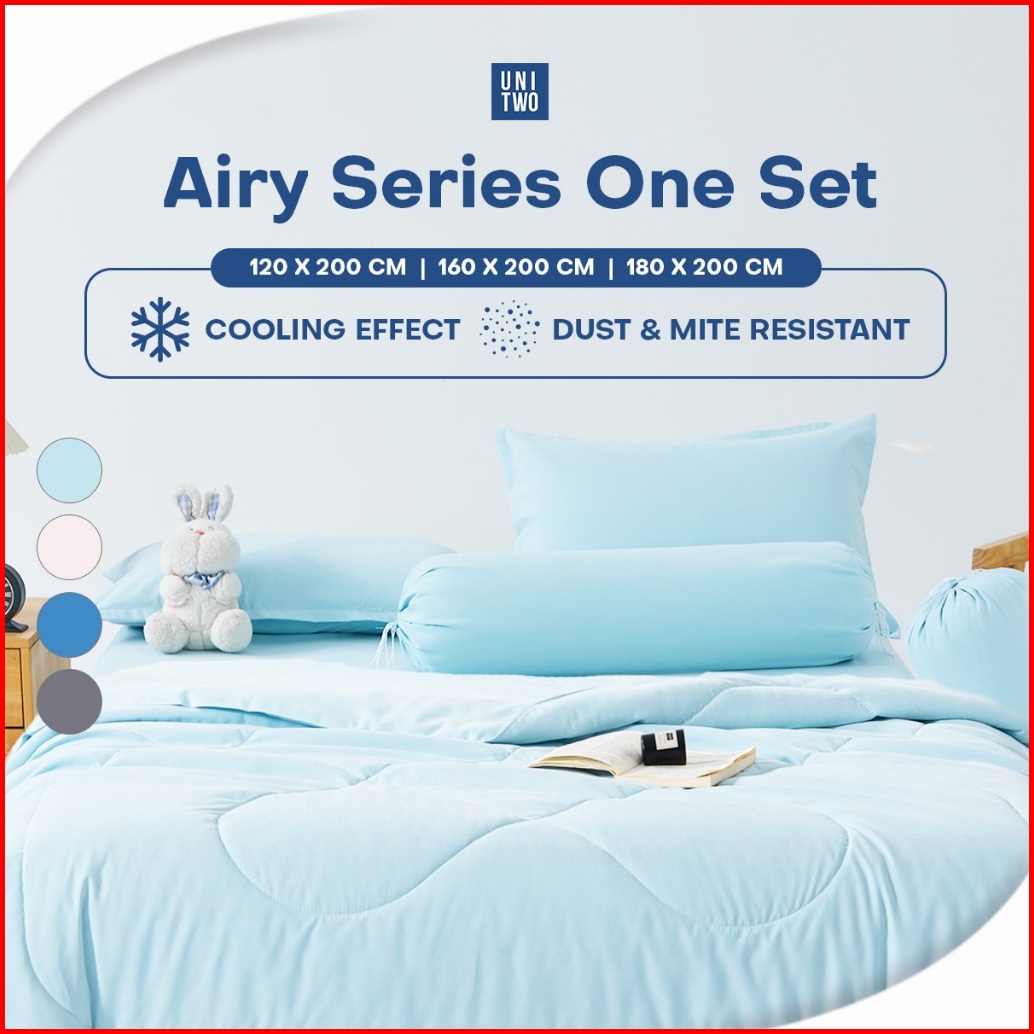 Unitwo Airy Bed Cover Seprei Set Bed Cover Set Dengan Sprei Set Sarung Bantal Dan Sarung Guling Full Karet Keliling - Ai