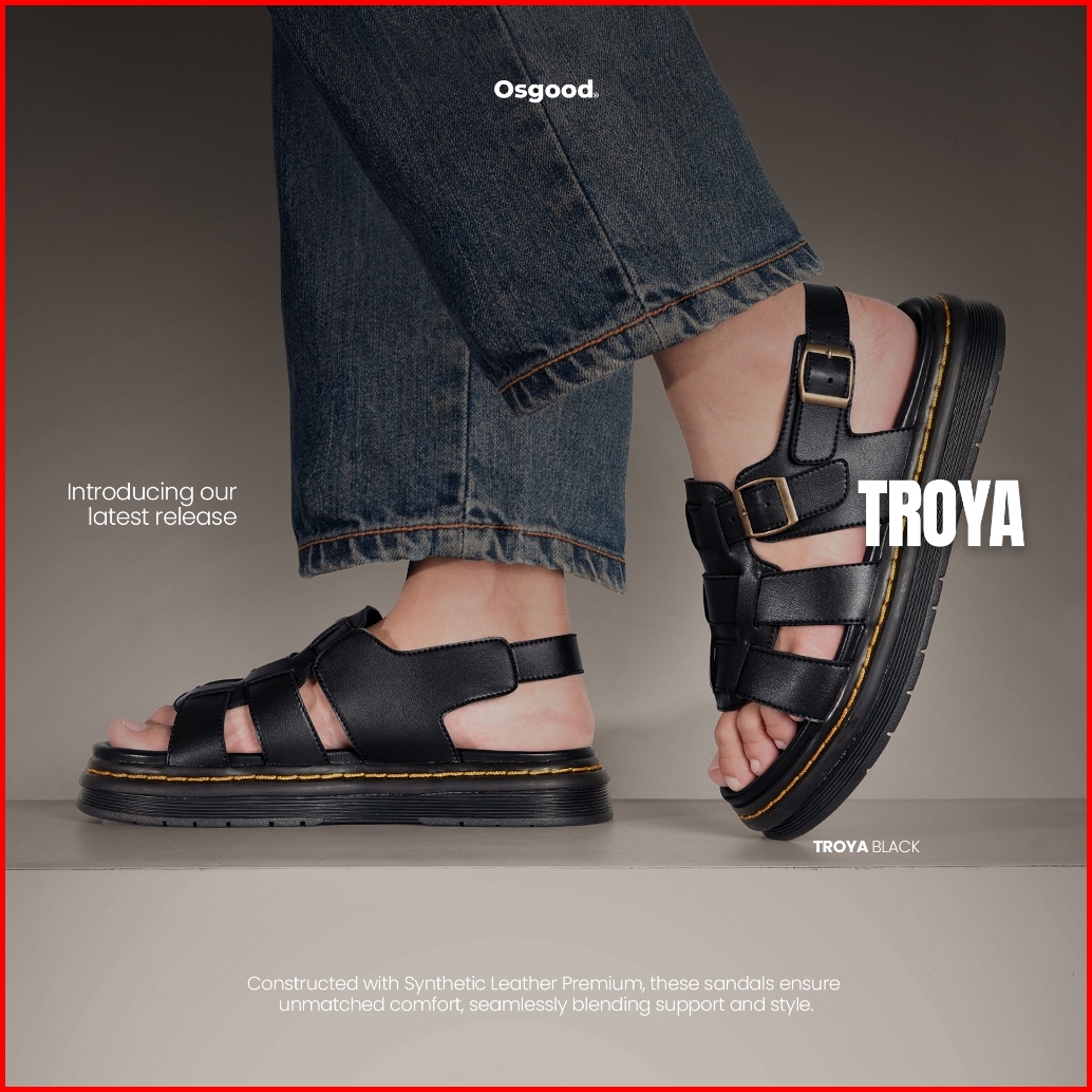 Osgood - Troya Black - Sepatu Sandal Kulit