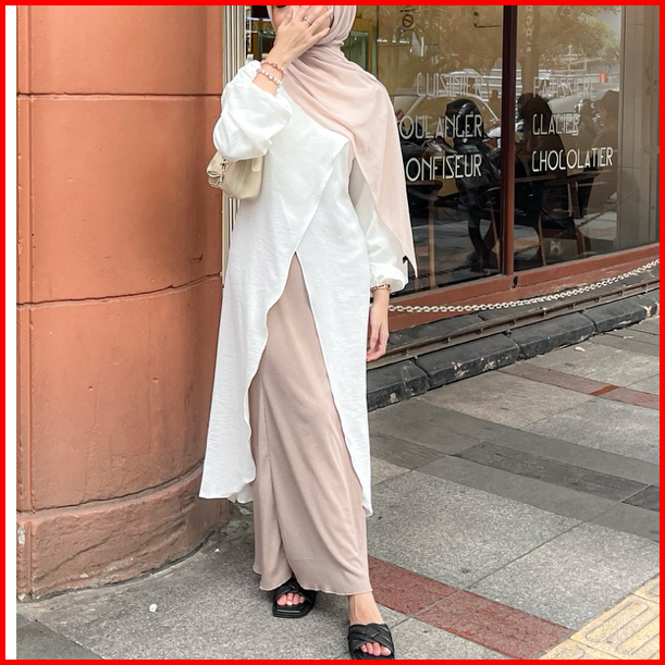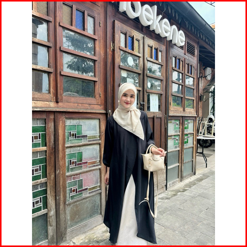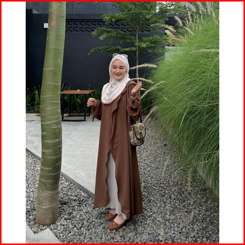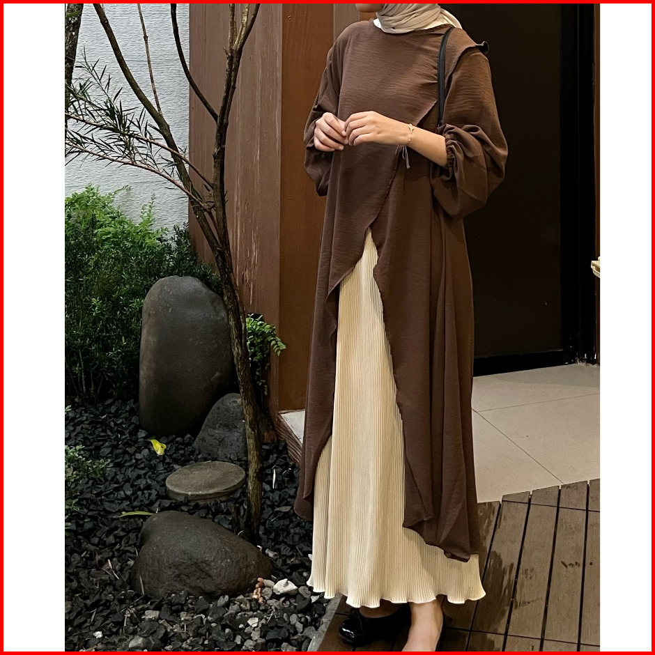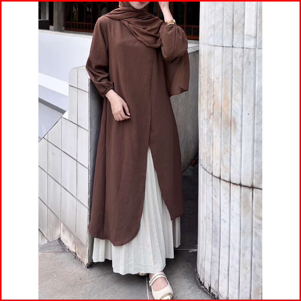 Ayumi Tunik By Safalunaku Midi Dress Simple Ruffle Belah Tengah Polos Crinkle Airflow