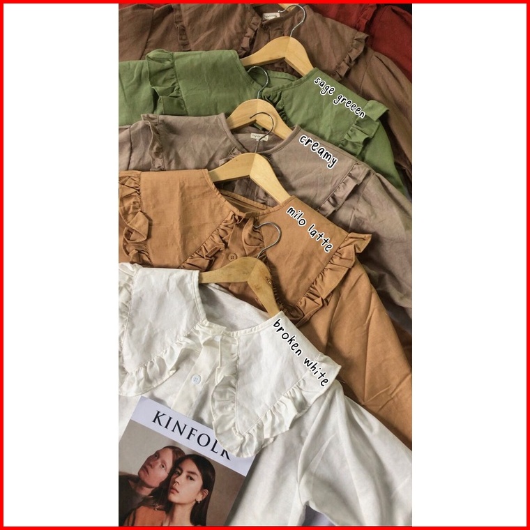 Naura Blouse By Safalunaku Kemeja Rami Kekinian Kemeja Polos Blouse Poplin Blouse Korean Collar Blouse Broken White Blou
