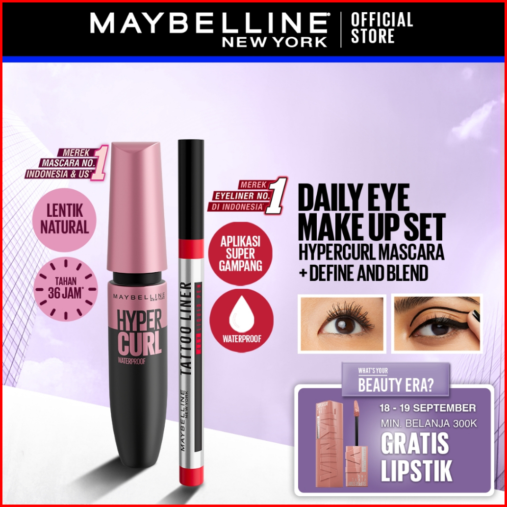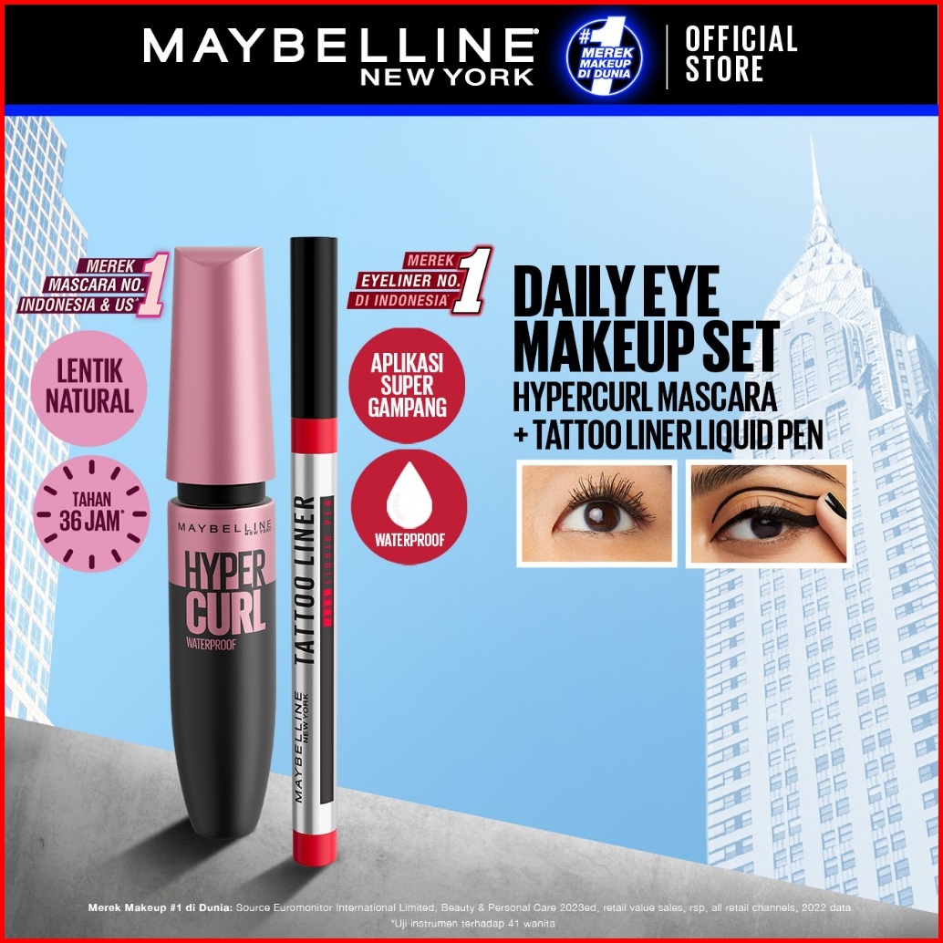 Maybelline Daily Eye Makeup Bundle Hypercurl Waterproof Mascara Tattoo Liner 48h Liquid Pen Eyeliner Waterproof Tahan 48