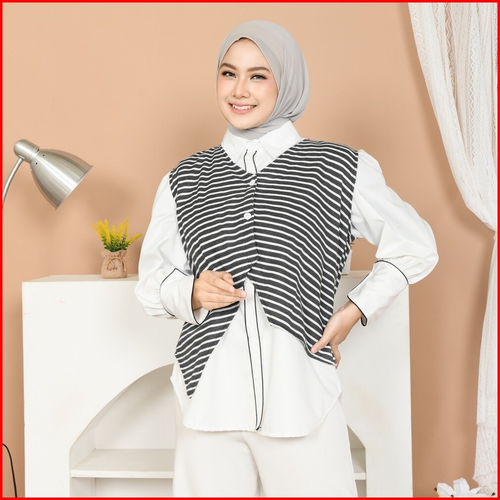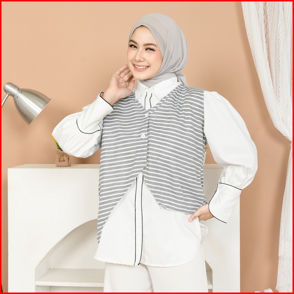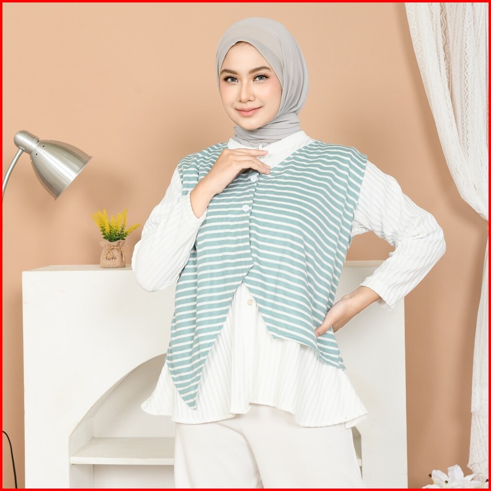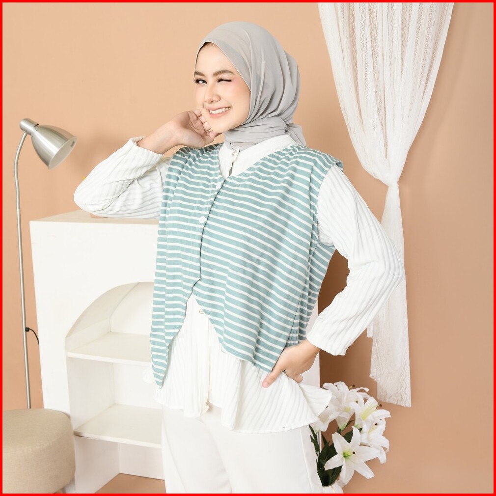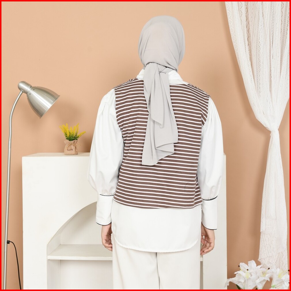 Mybamus Aro Outer Stripe Wanita Kekinian Vest Asimetris Korean Style