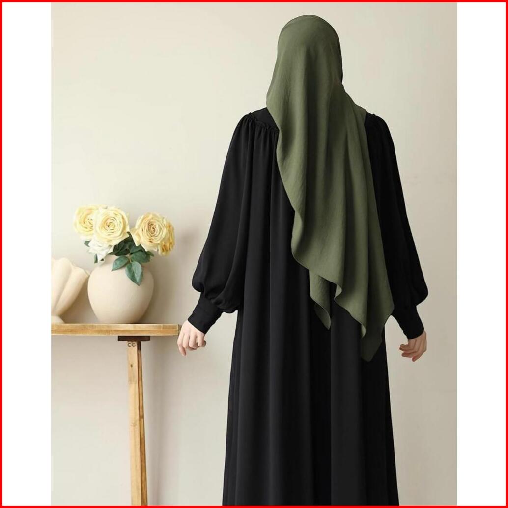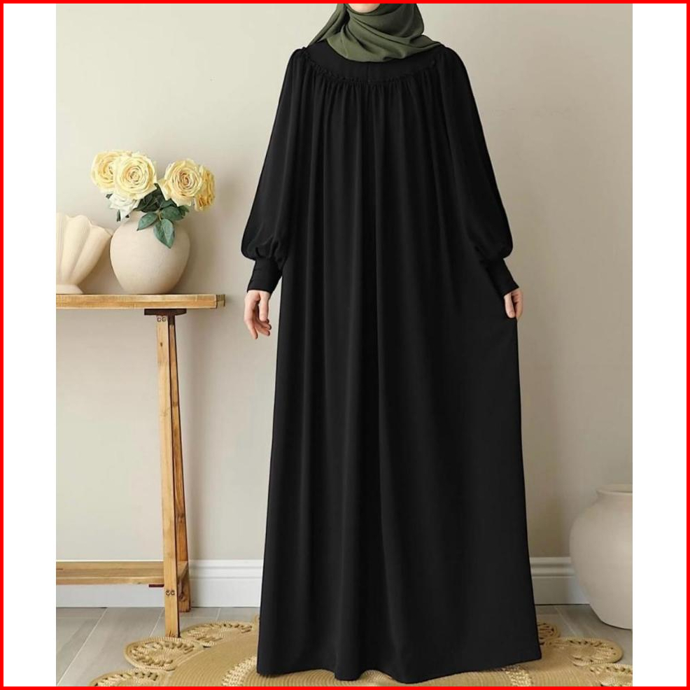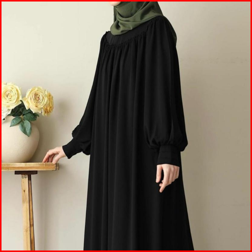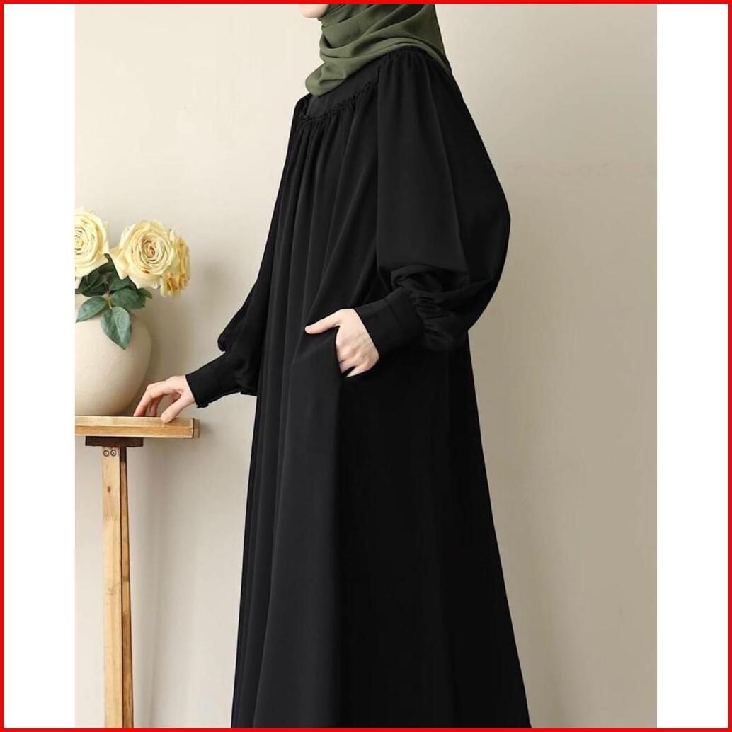Gf - Kasuari Dress Bahan Jet Black Gamis Hitam Polos Premium Baju Muslim Umroh Dan Haji
