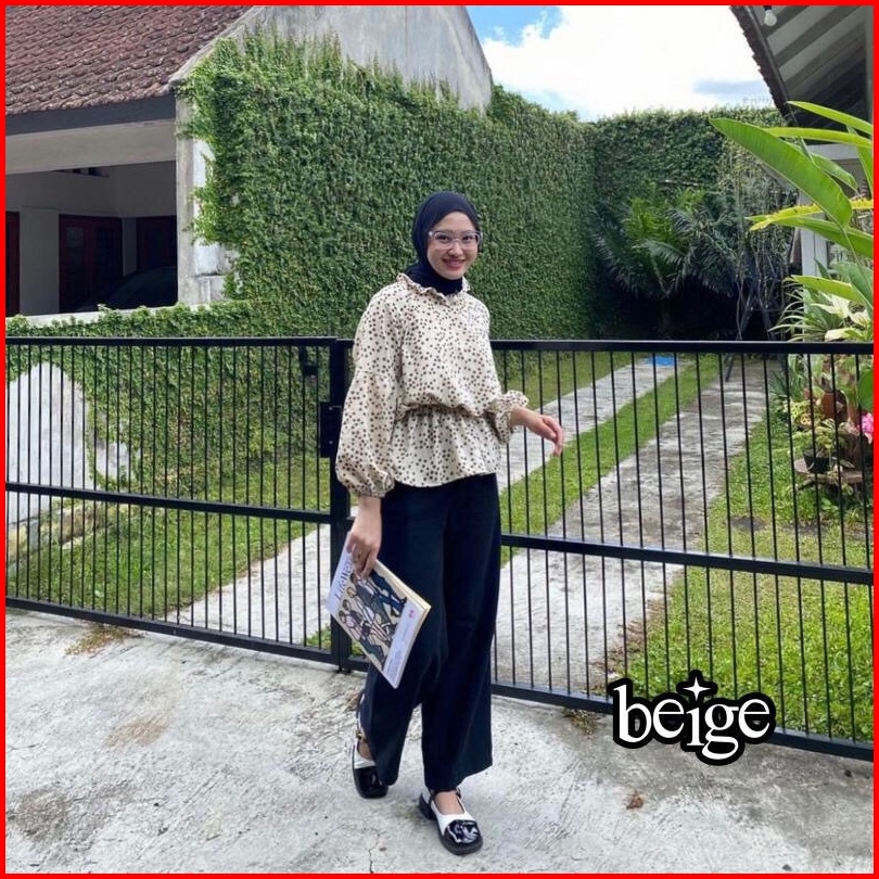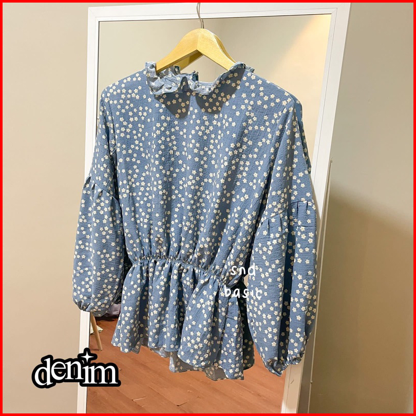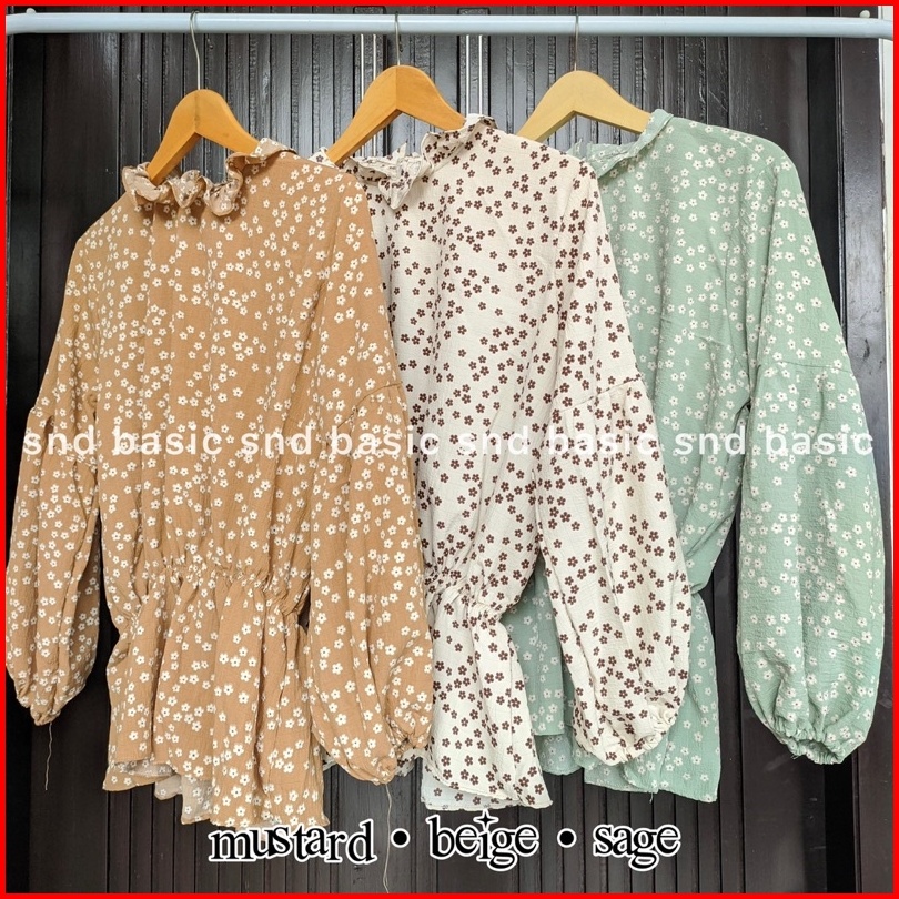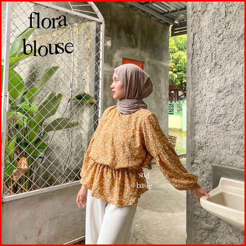 Flora Blouse Blus Kerut Crinkle Motif Bunga Lengan Balon
