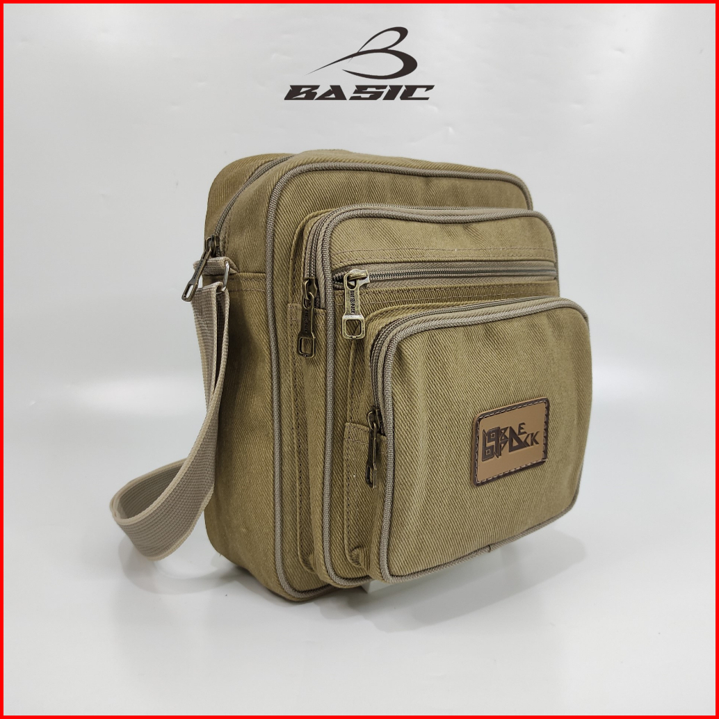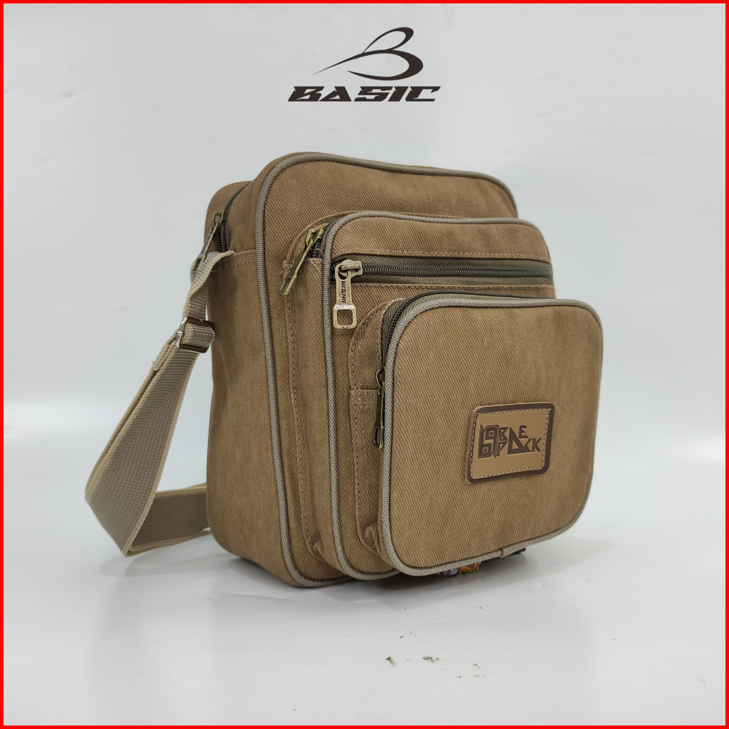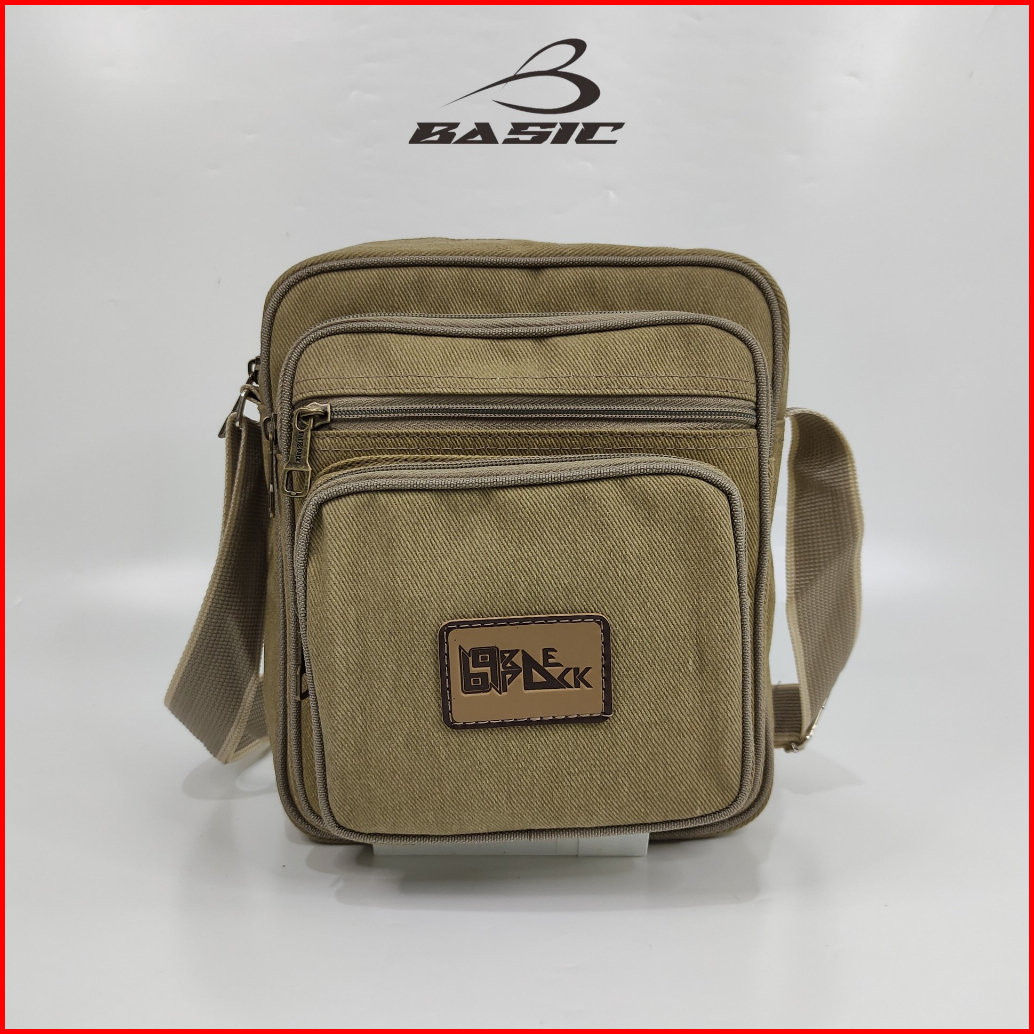 Baepack Tas Selempang Kanvas Pria Volker Cream Original Basicbag Tas Bahu Canvas Cowok Tas Kanvas Dewasa Tas Kanvas Kerj