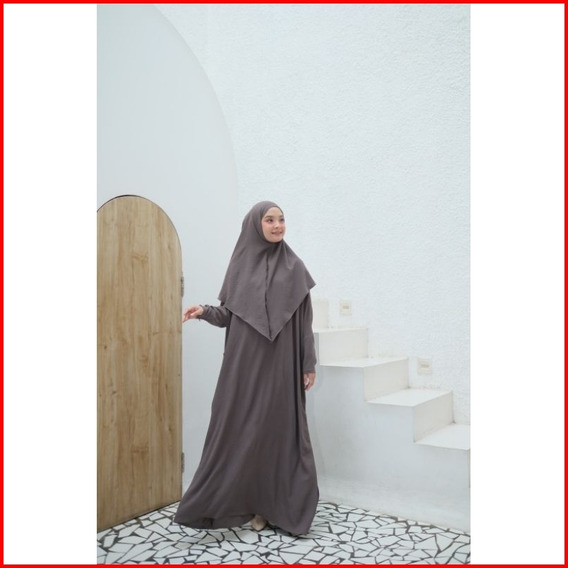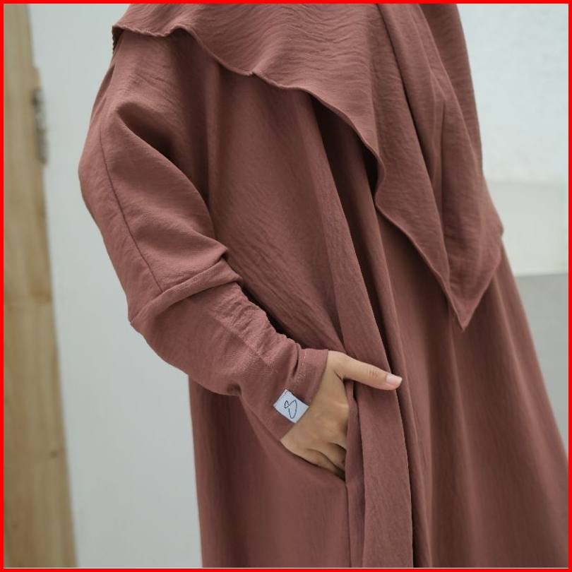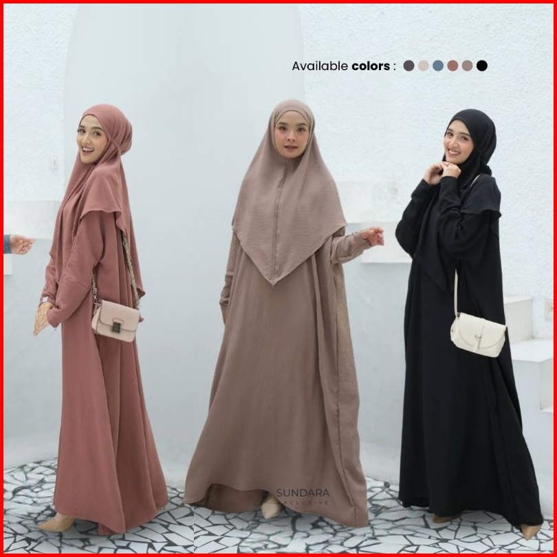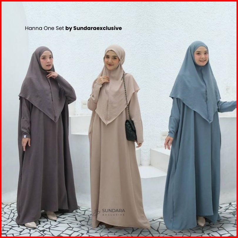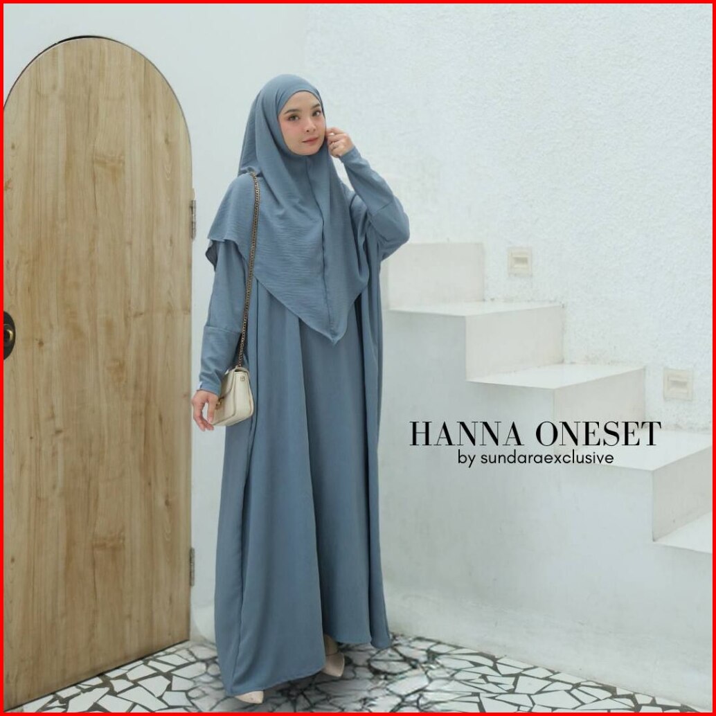 Hanna Oneset By Sundara Set Abaya Krinkel Polos Gamis Muslimah