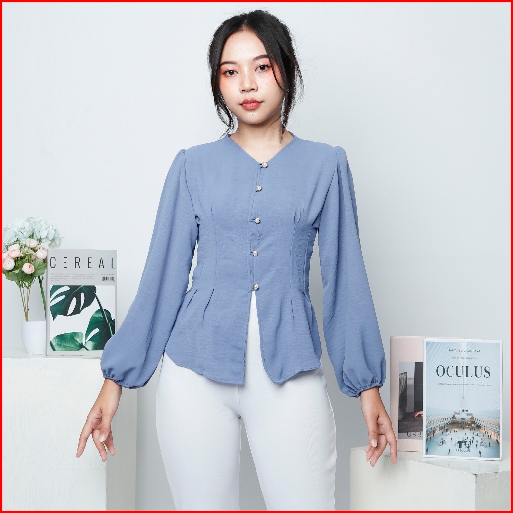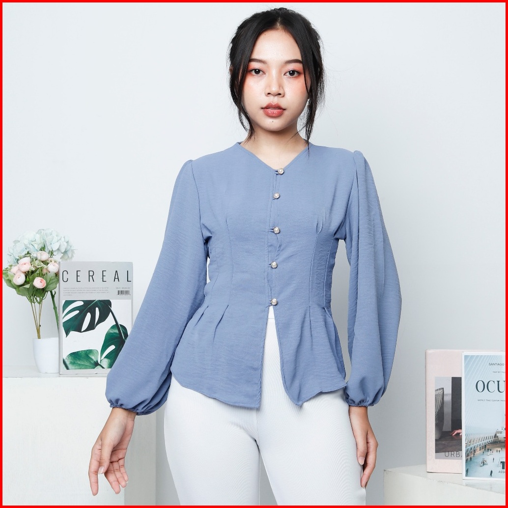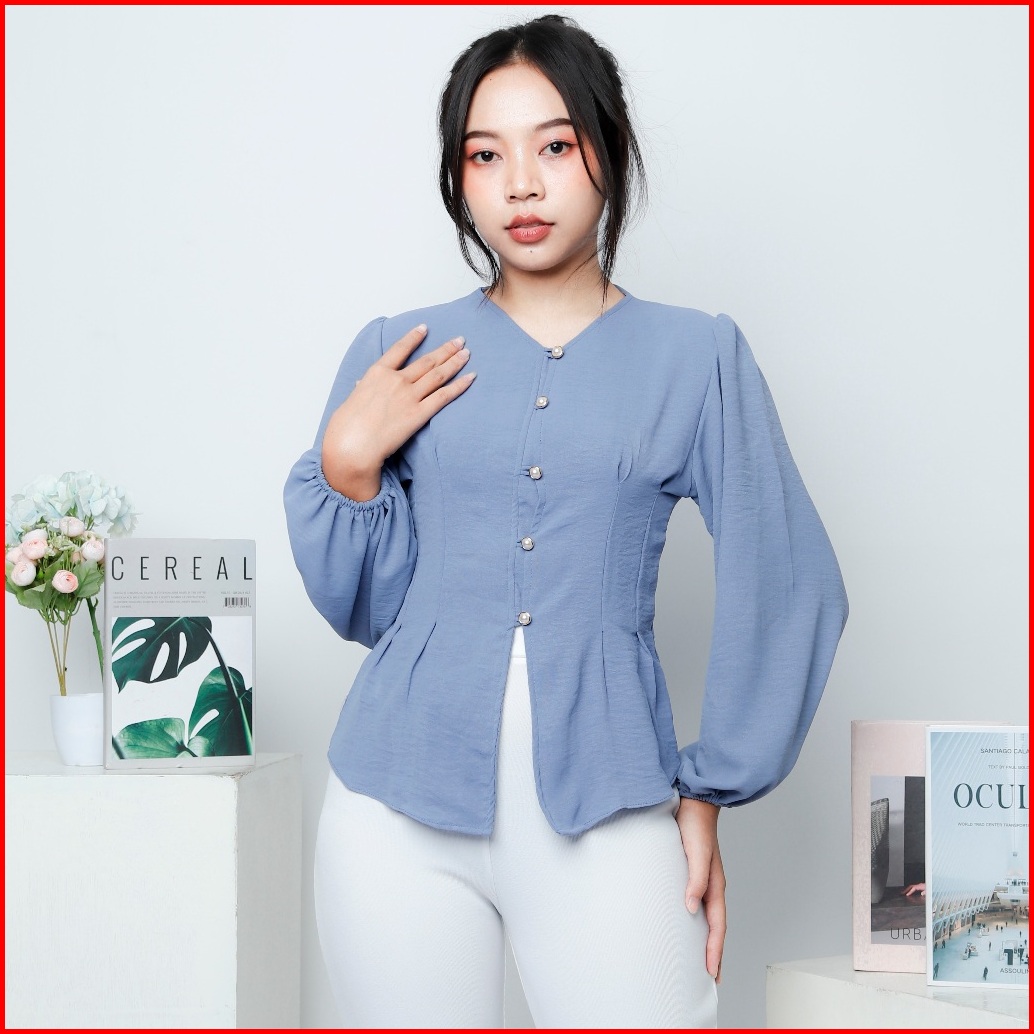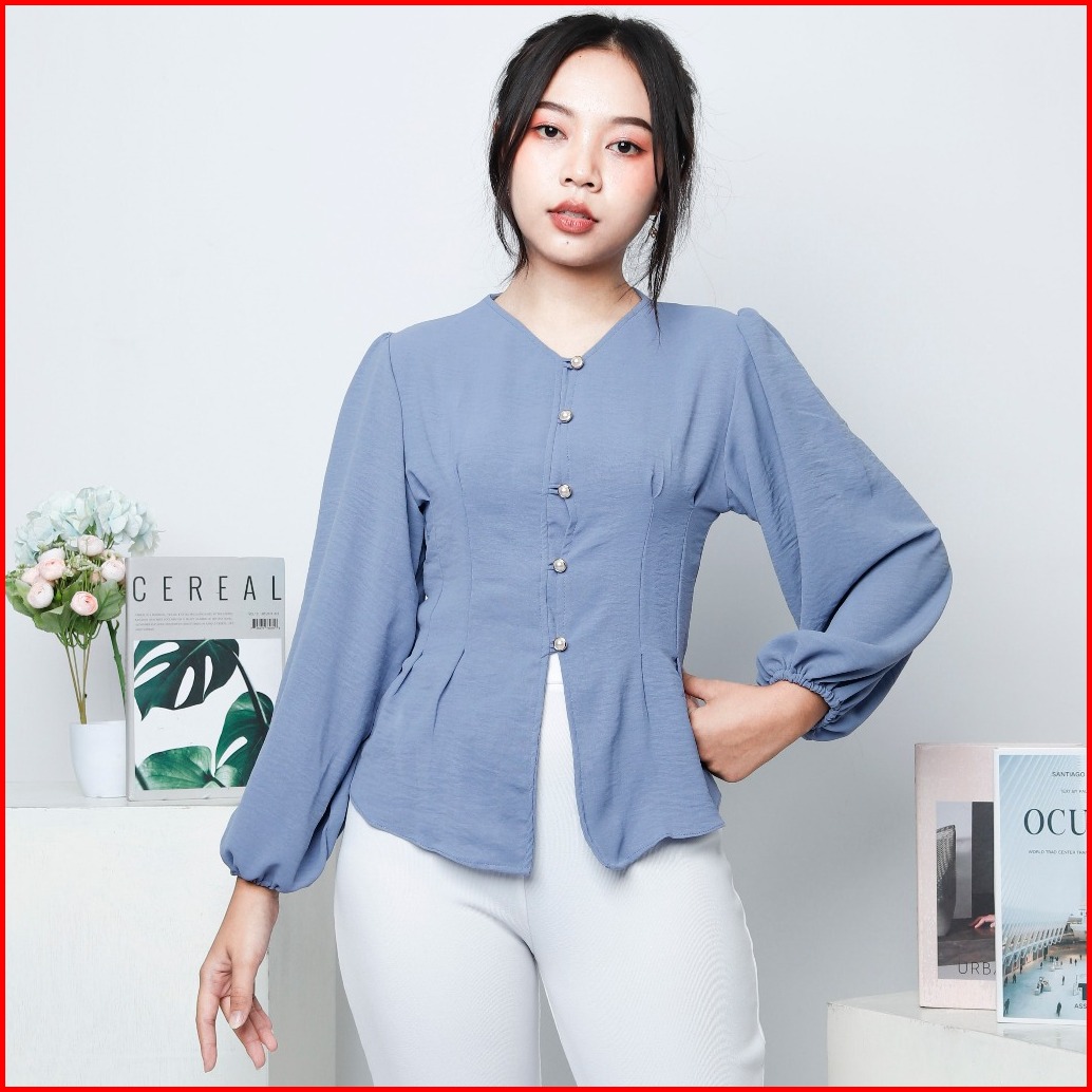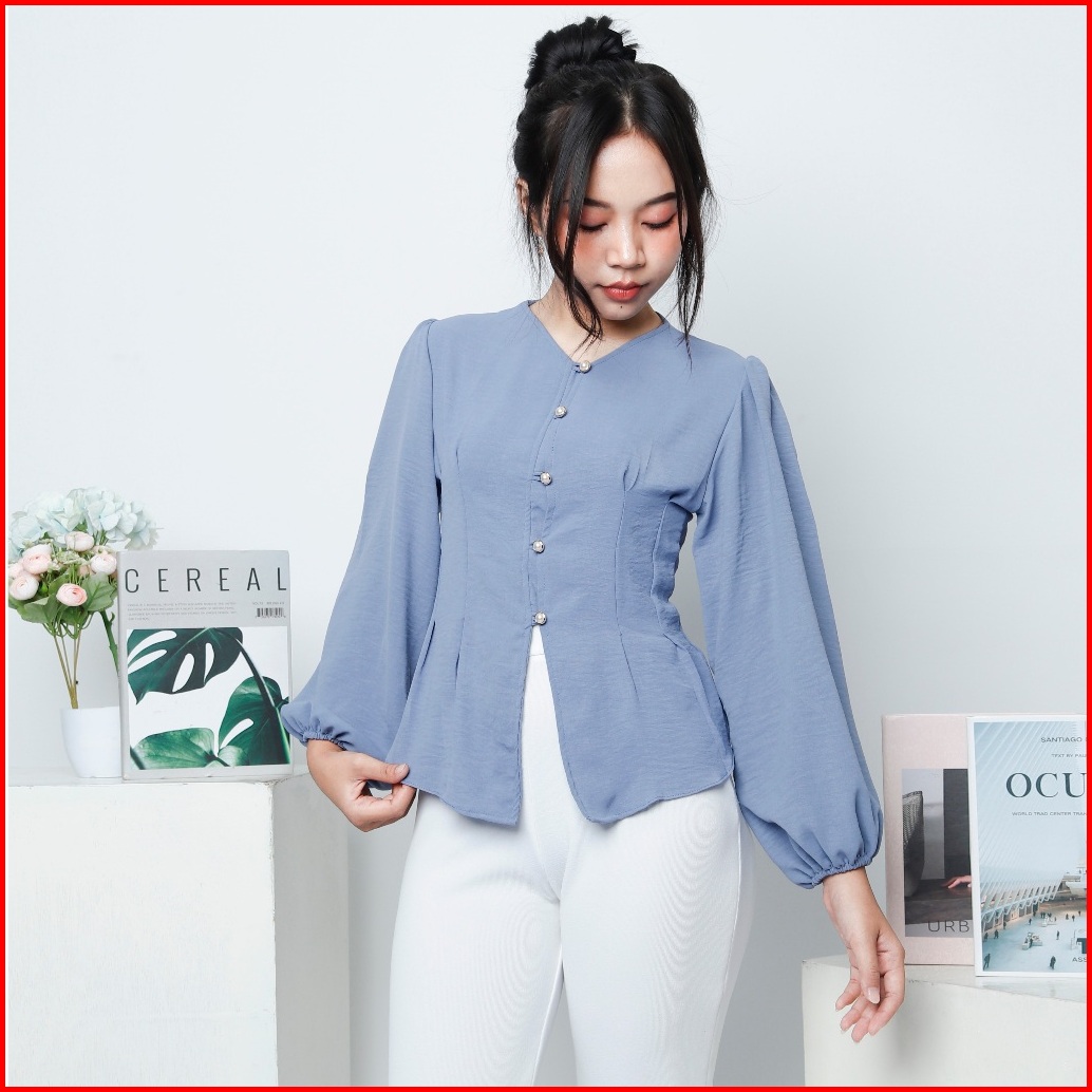 Blouse Wanita Lengan Balon Aluna Blouse Wanita Kancing Depan By Knara