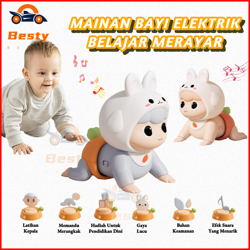 Besty Mainan Bayi Merangkak Doll Mainan Bayi Balita Boneka Crawling Elektrik Dengan Musik