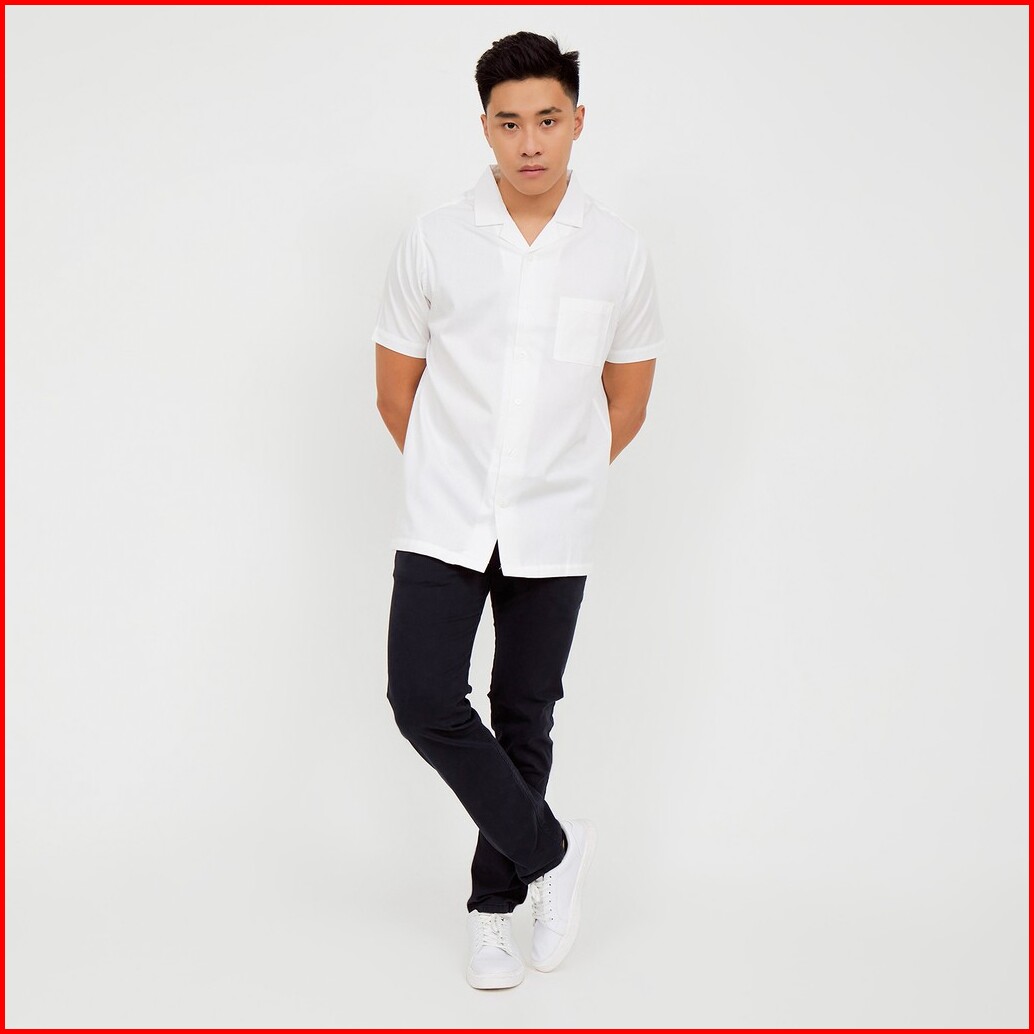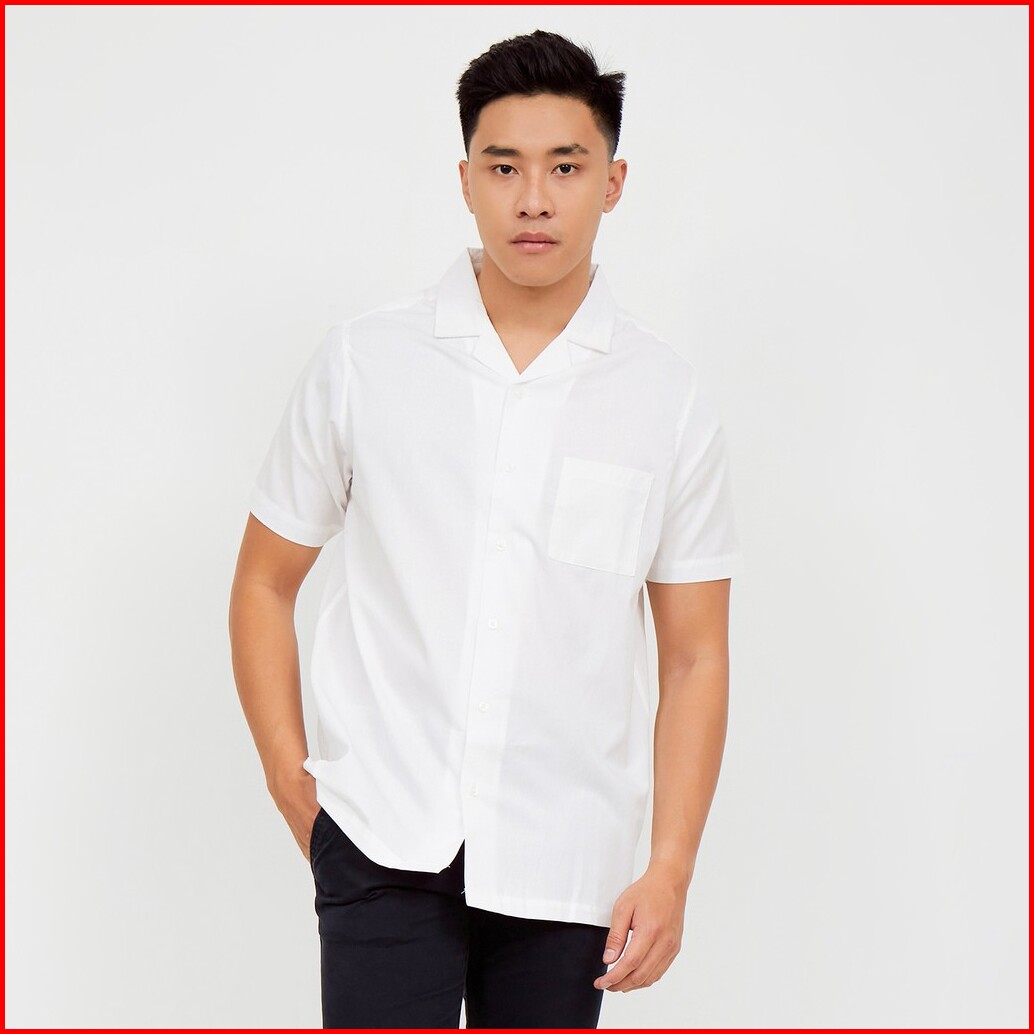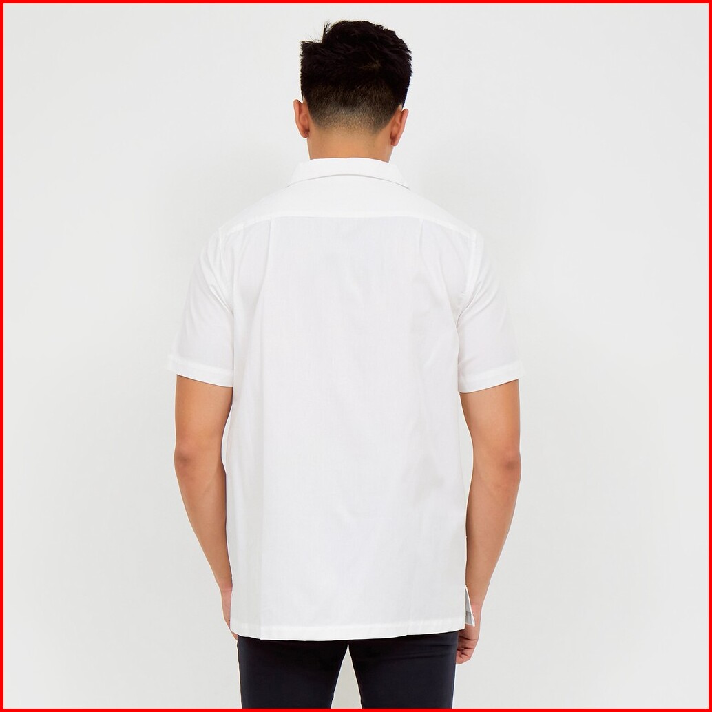 M231 Kemeja Pria Basic Polos Hawaii Oversized Pendek Putih 2190d