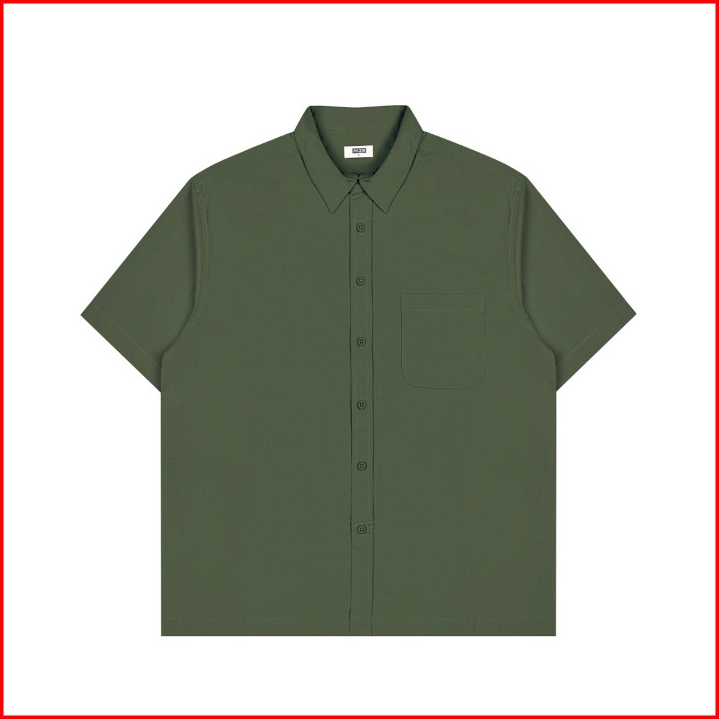 M231 Kemeja Pria Boxy Tekstur Motif Linen Hijau 1171a