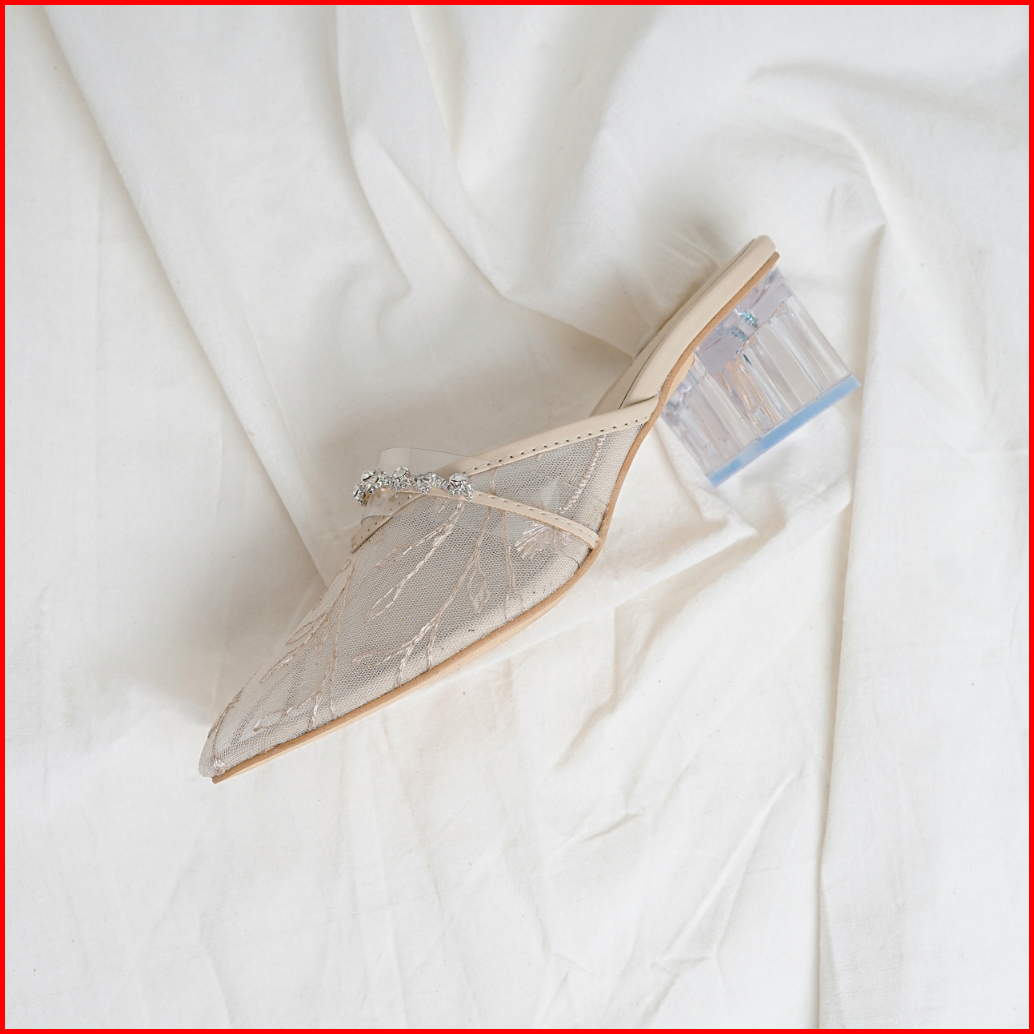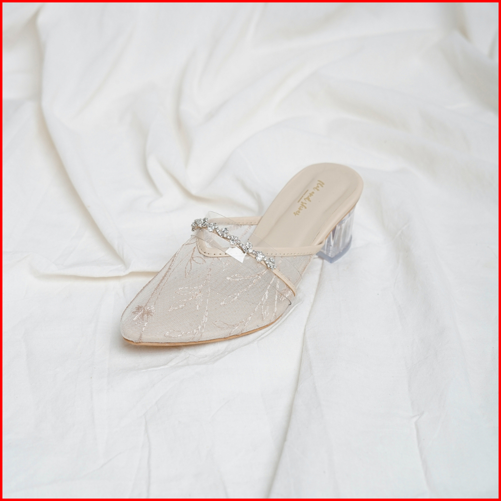 Sepatu Wedding Wanita Azwa Cream 5 Cm Kaca