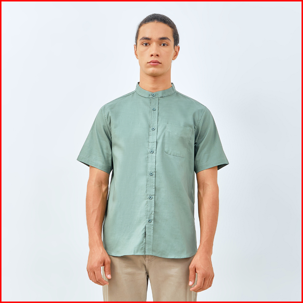M231 Kemeja Pria Koko Shanghai Polos Pendek Hijau 0184d