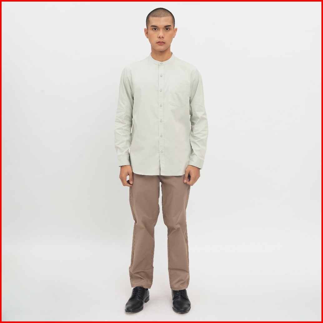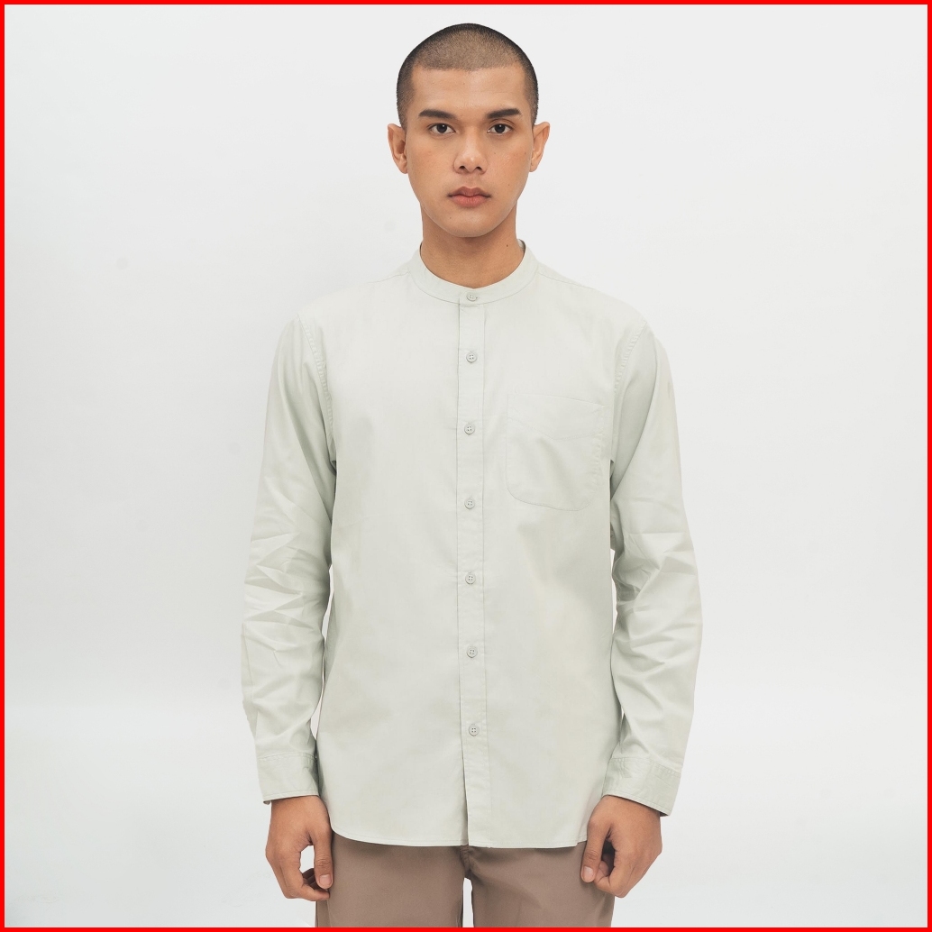 M231 Kemeja Pria Koko Shanghai Polos Panjang Hijau Mint 0915c