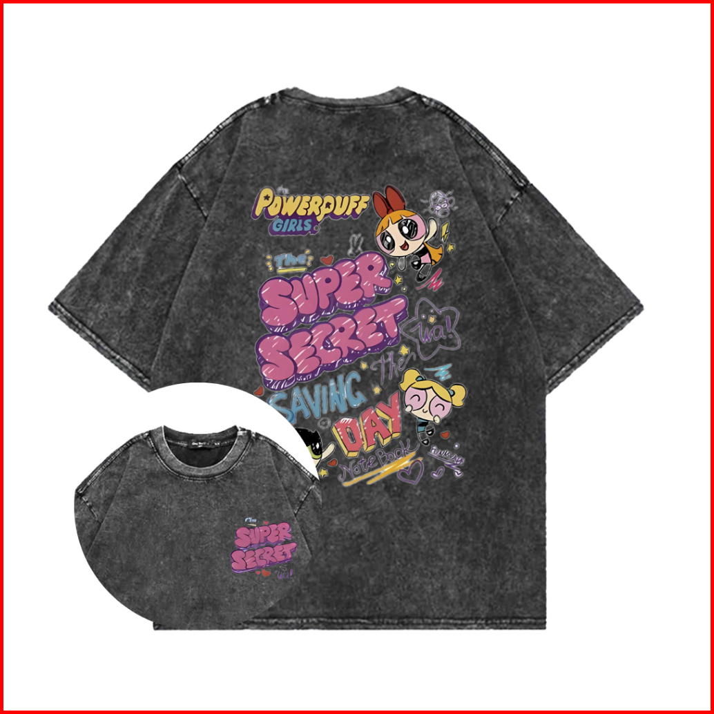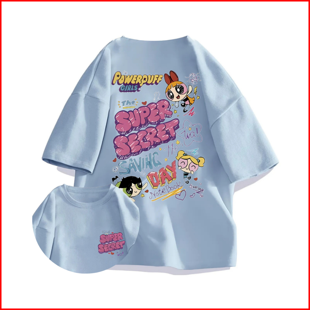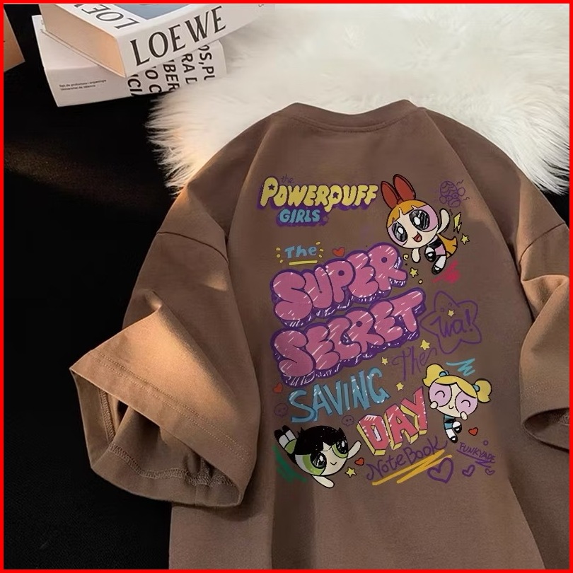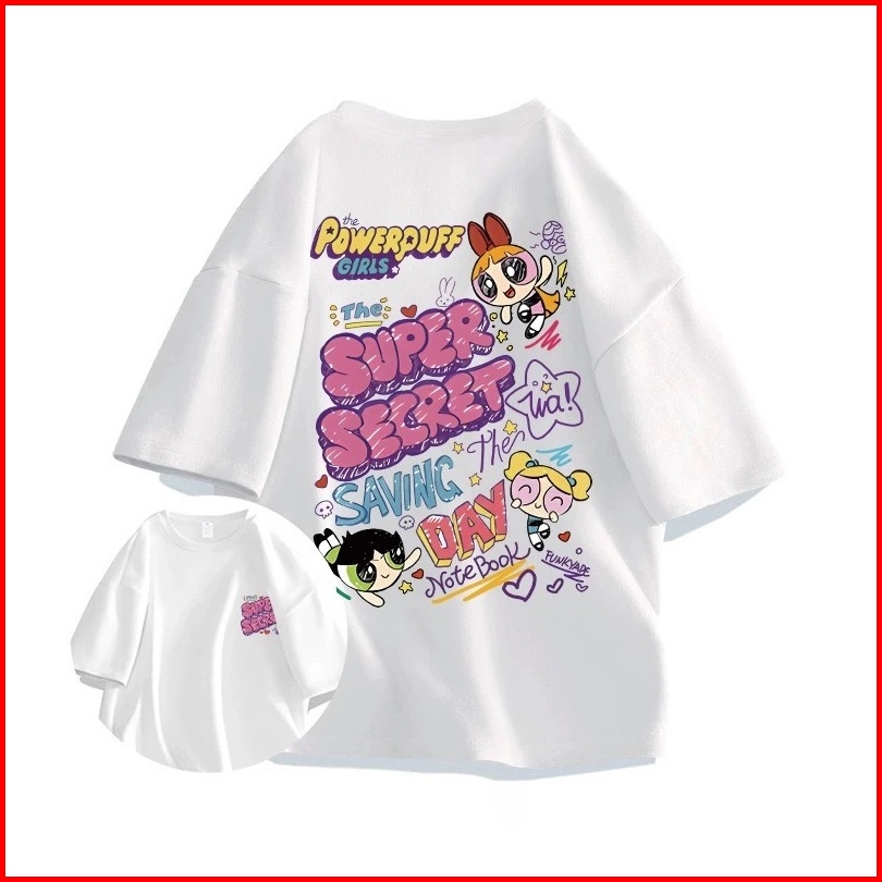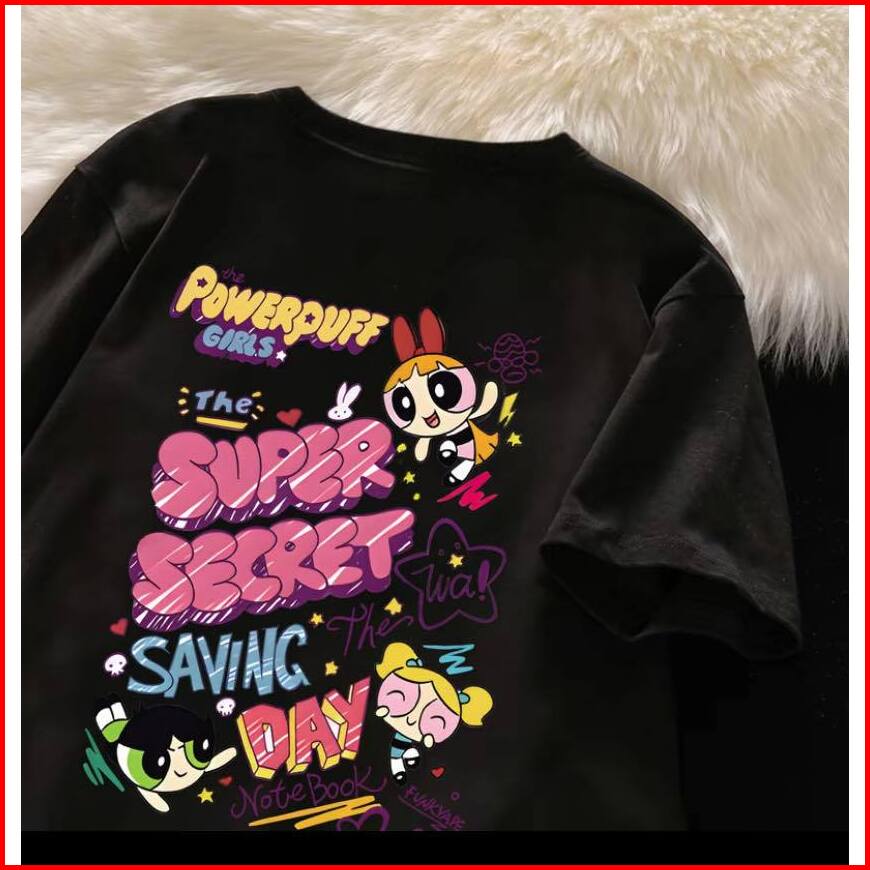 Lucky88k T-shirt Lengan Pendek Baju Kaos Oversize Kartun Powerpuff Girls Korean Style Bahan 100 Cotton