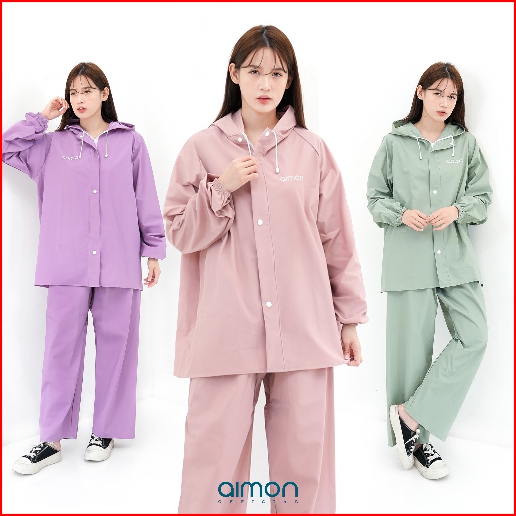 Aimon Jas Hujan Pria Wanita Warna Pastel Setelan Jaket Celana
