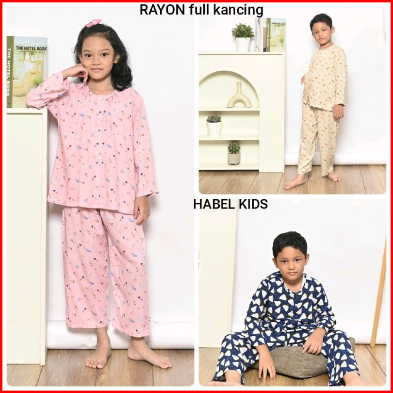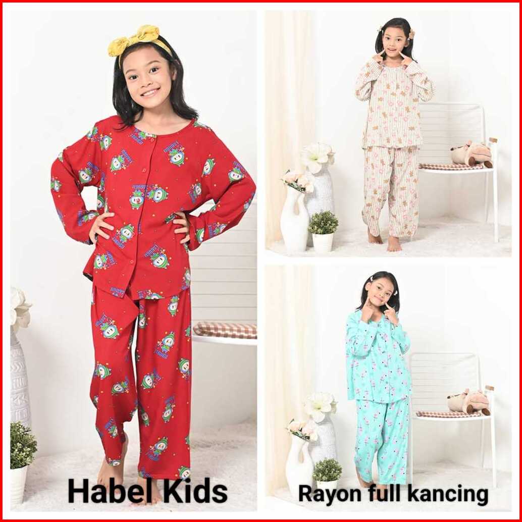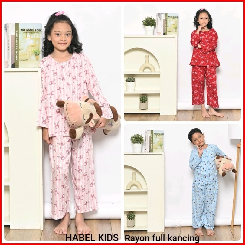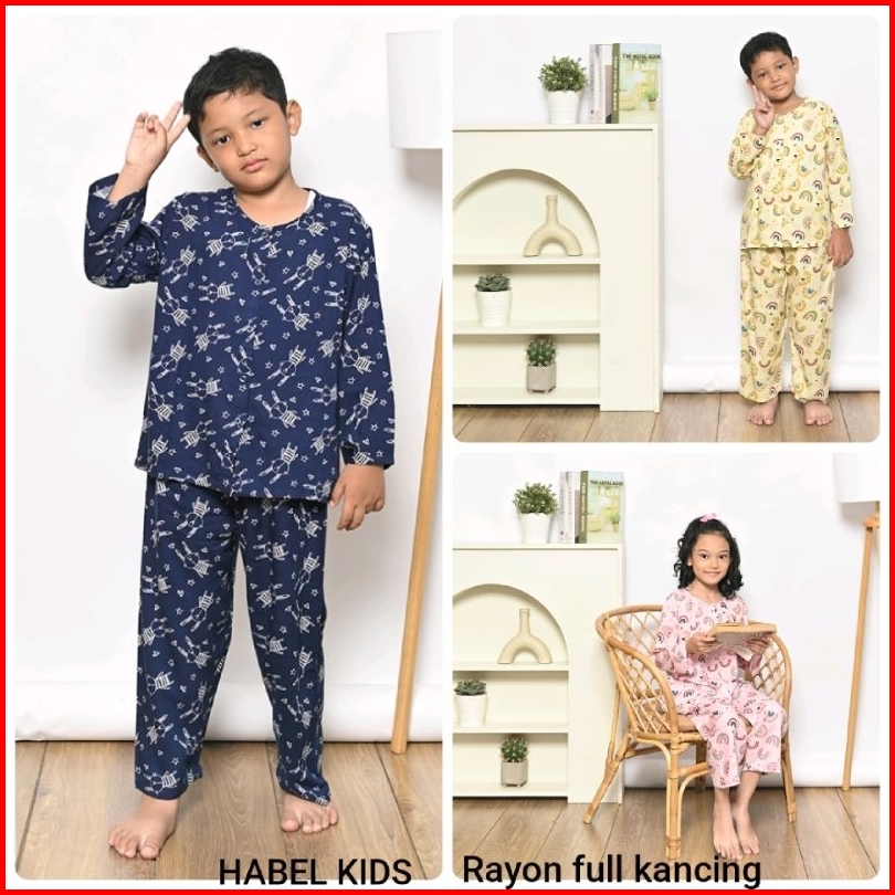 Setelan Anak Rayon Full Kancing Panjang Merek Habel