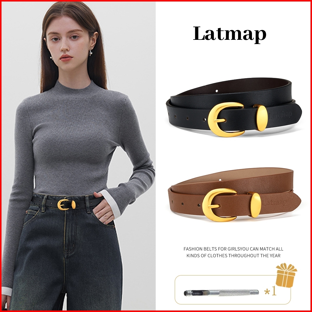 Latmap Ikat Pinggang Wanita Fashion Casual Gesper Wanita Belt Kulit Sapi Asli P001