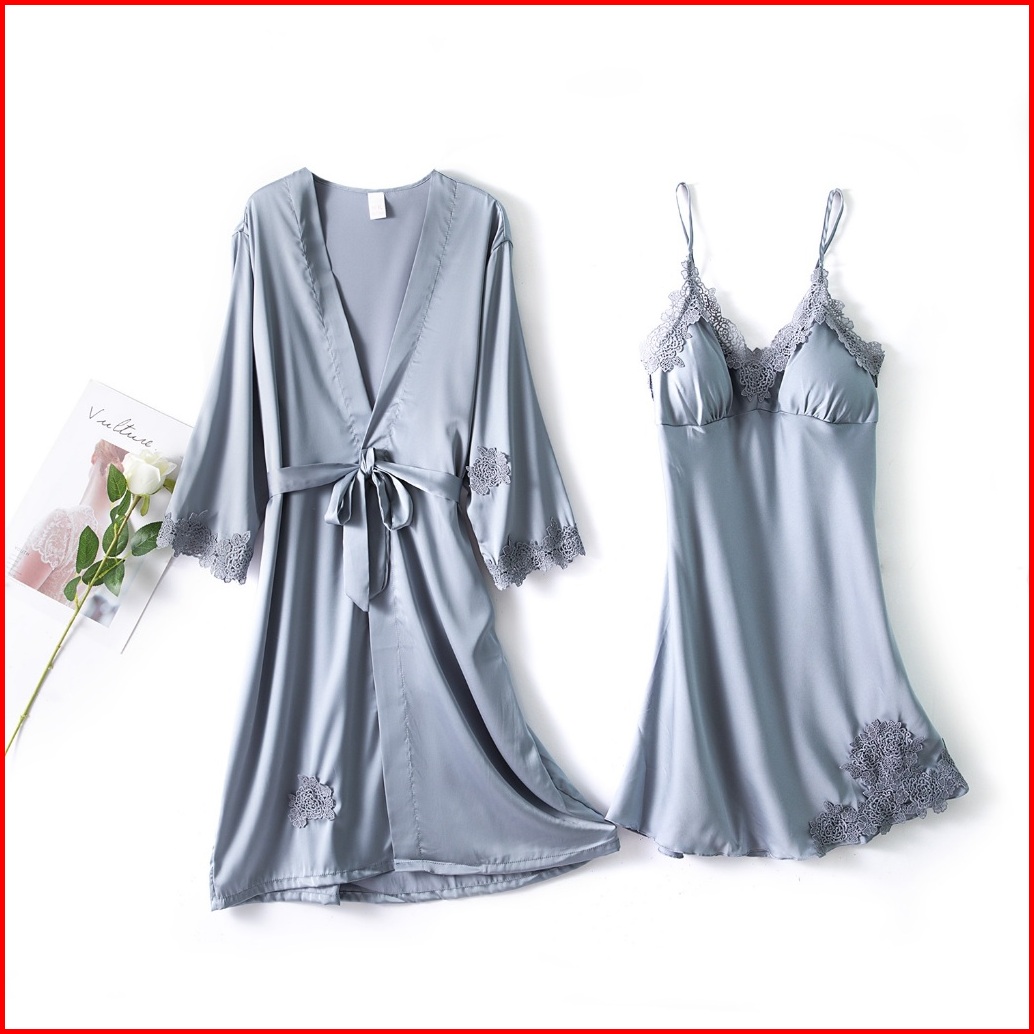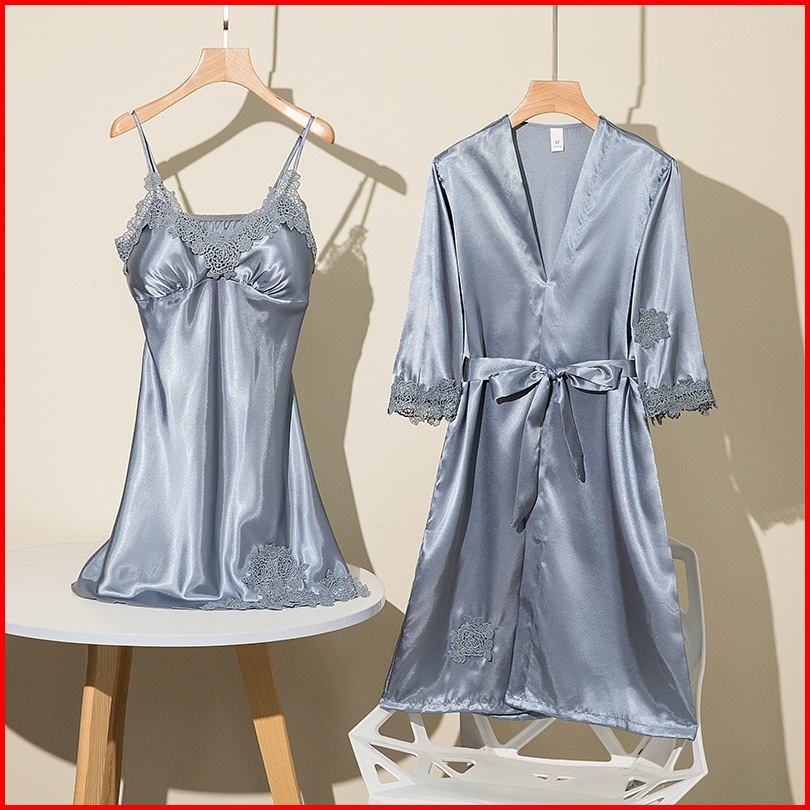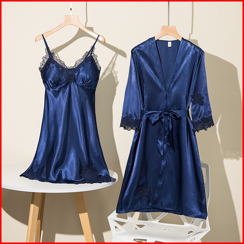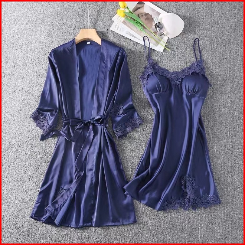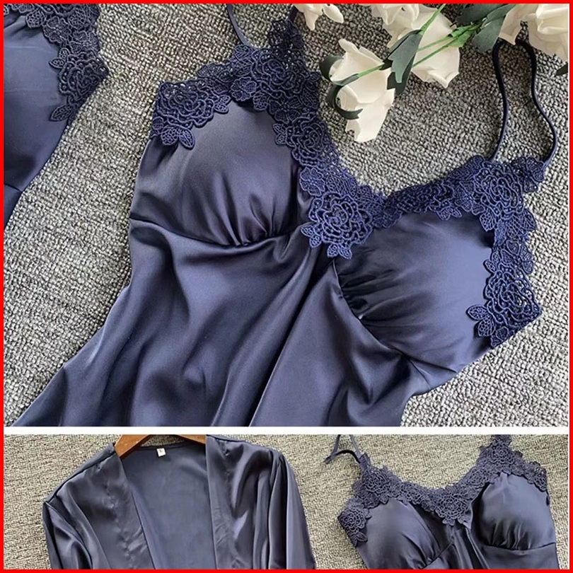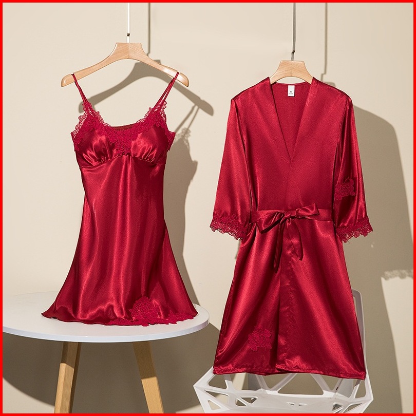 Baju Tidur Sexy 2 In 1 Import Seserahan Bajutidur Baju Tidur Satin Lengan Panjang Kimono Lingerie Seksi Piyama