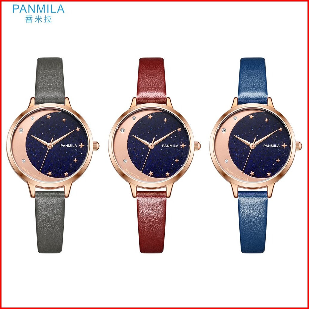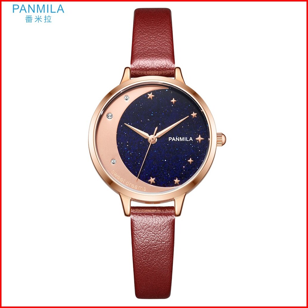 Panmila Jam Tangan Wanita P0475m-dz1reb Tali Kulit Red Maroon Genuine Leather