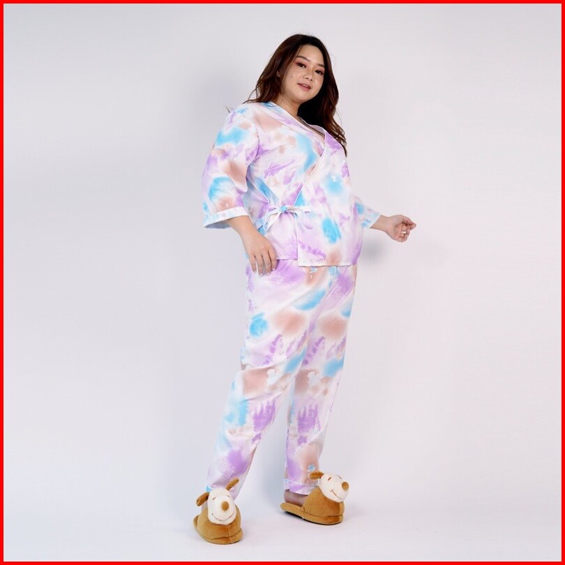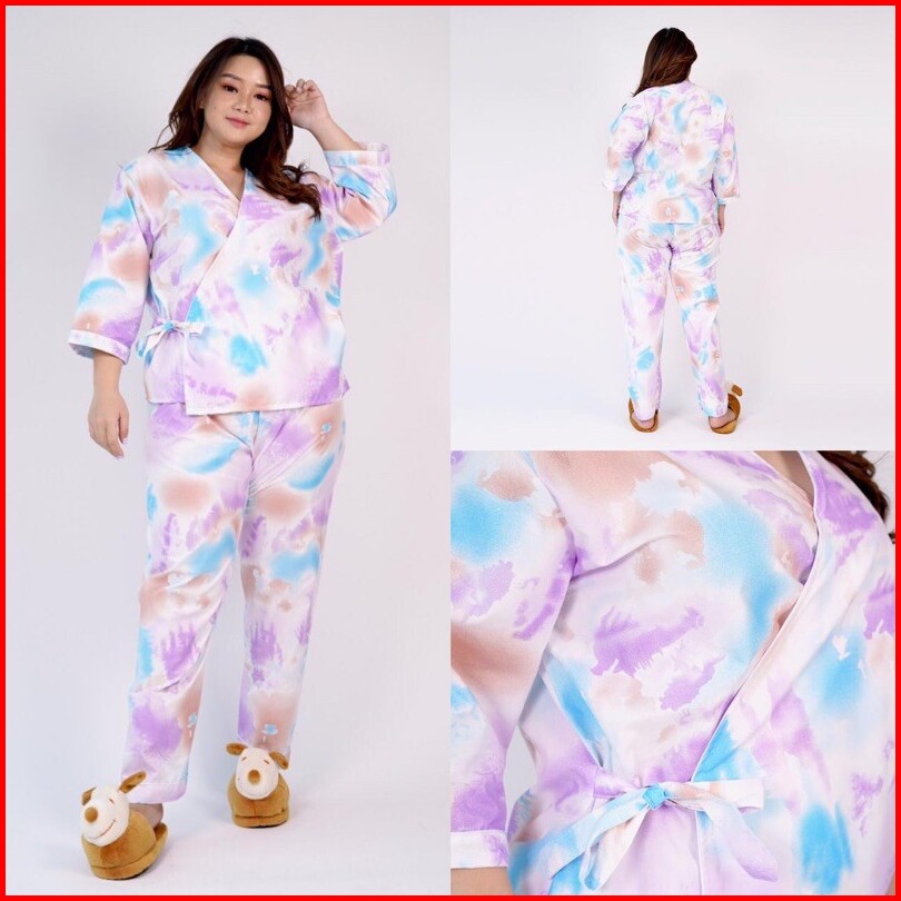 Setelan Jumbo Xxl Kimono Celana Panjang Tie Dye Big Size - Katun - Daily Wear