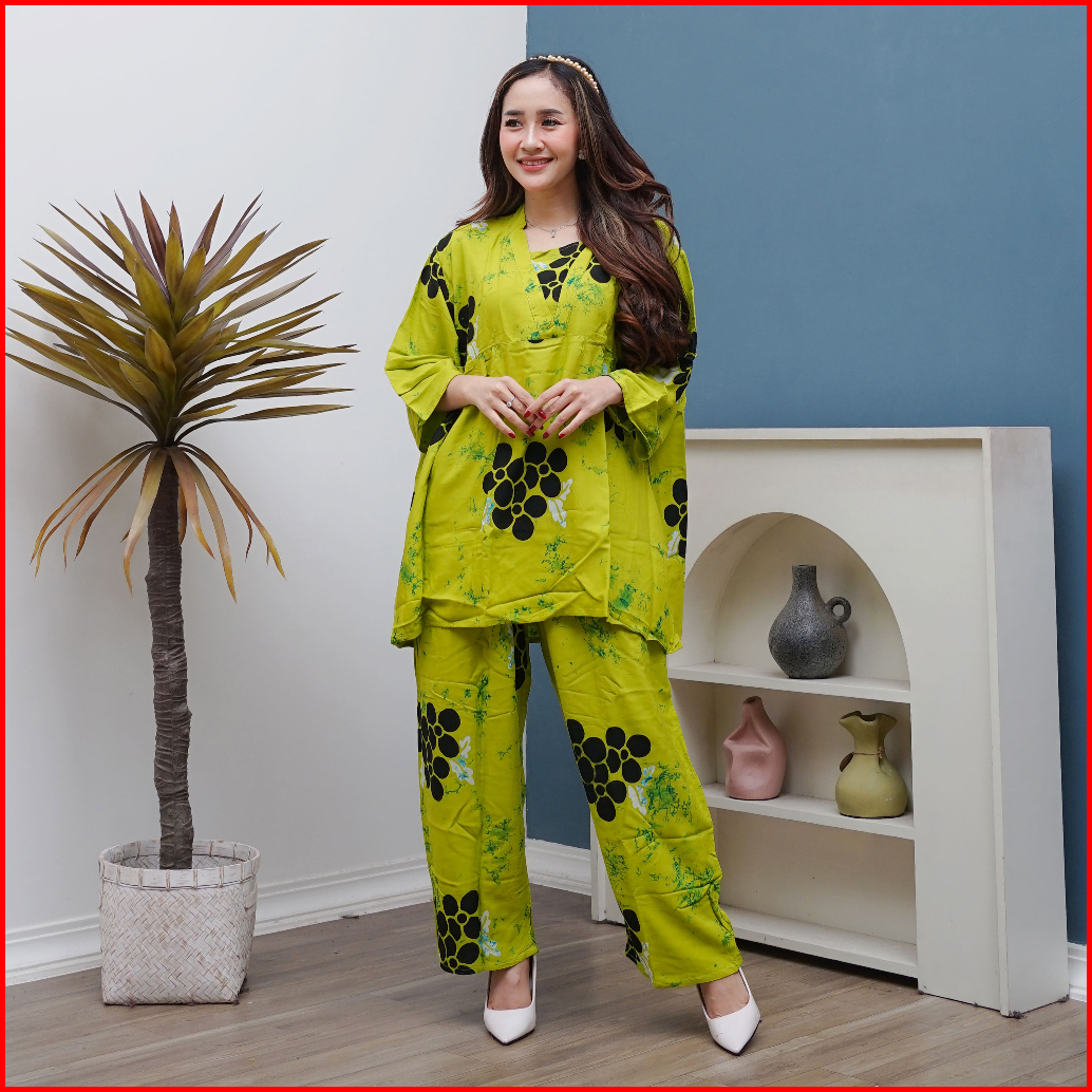 Setelan Celana Panjang Kimono Uk Jumbo Batik Pekalongan Putri Laila Tersanjung