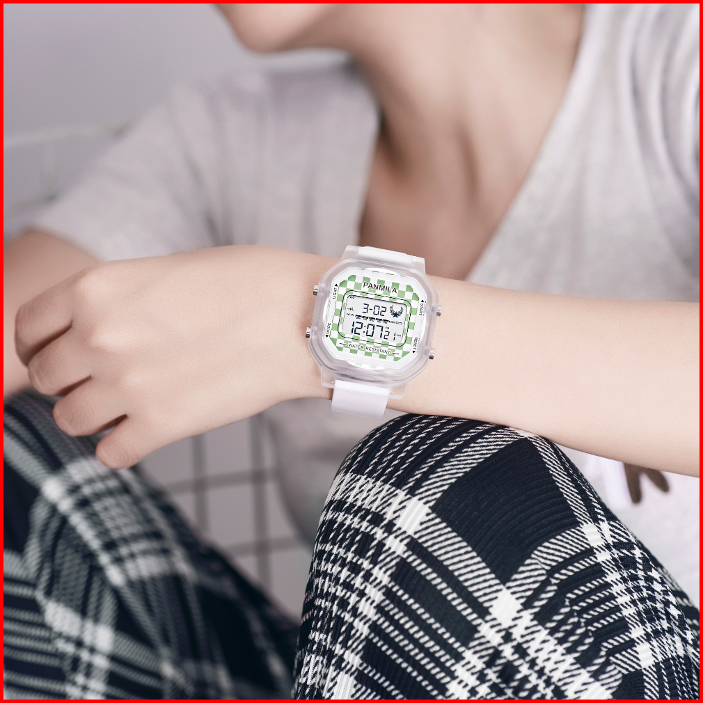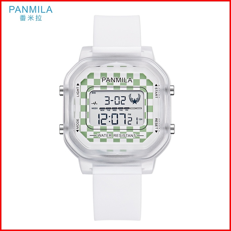 Panmila Jam Tangan Kasual Sporty Digital Tartan Hijau P0639l-zz15wwq Tali Silicon Putih