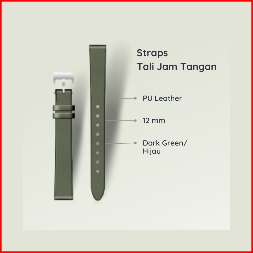 12mm Panmila Tali Strap Jam Tangan Wanita Pu Leather Warna Green Army Hijau Tua