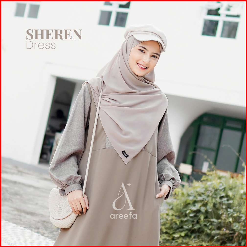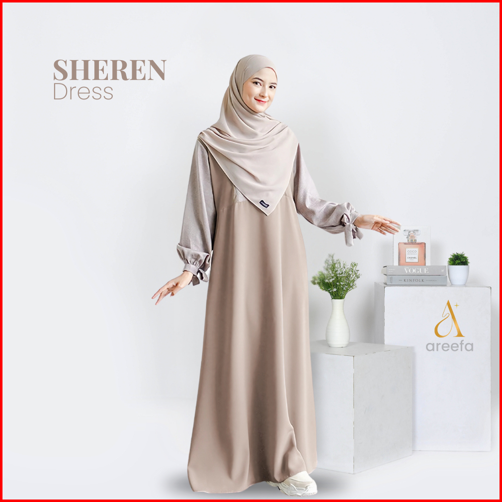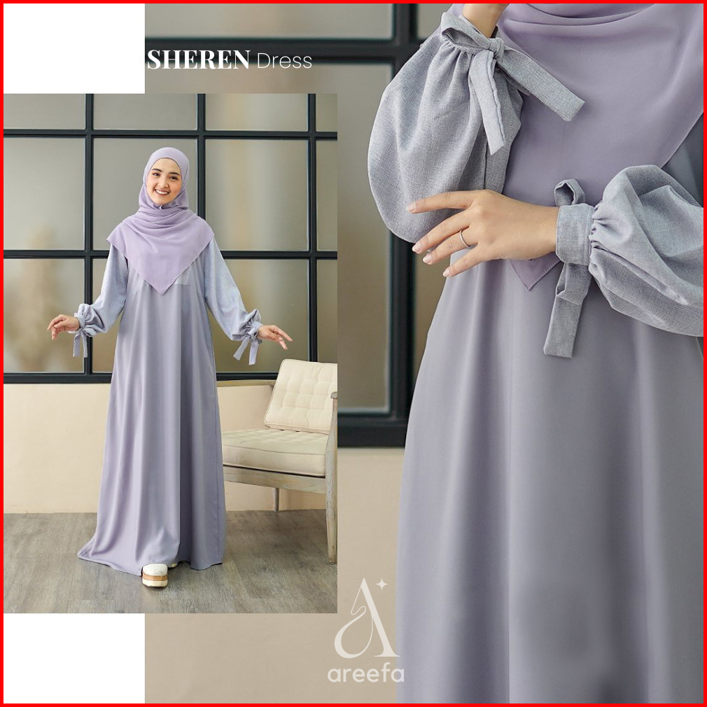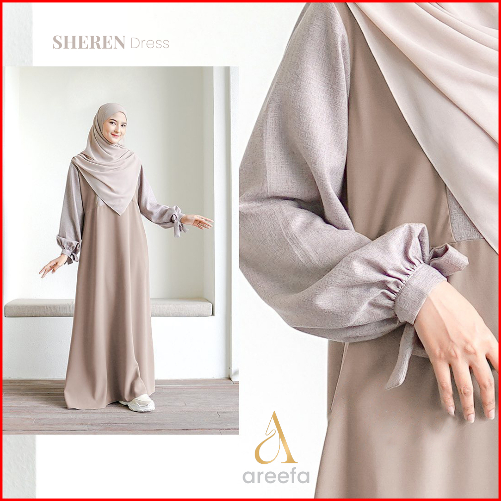 Areefa - Gamis Wanita Remaja Kekinian Terbaru Sheren Dress Gamis Muslim Polos Kombinasi 2 Warna
